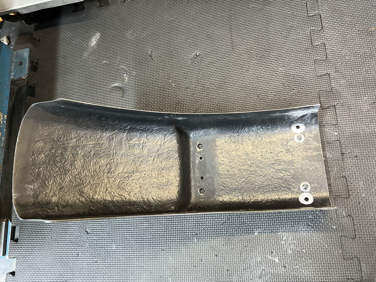 シートに固定するためのステーを製し、取り付け穴、サービスホールを設けます。