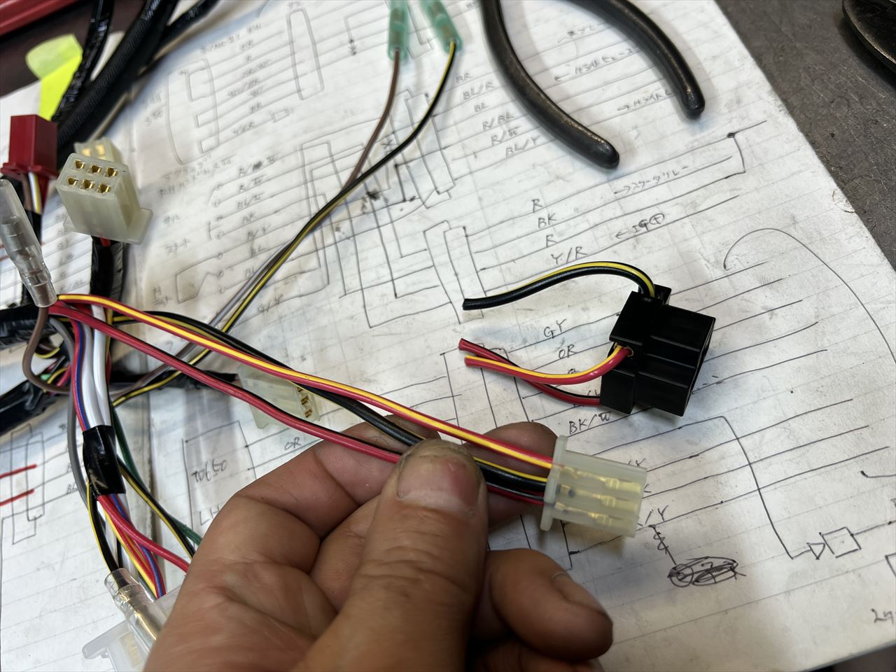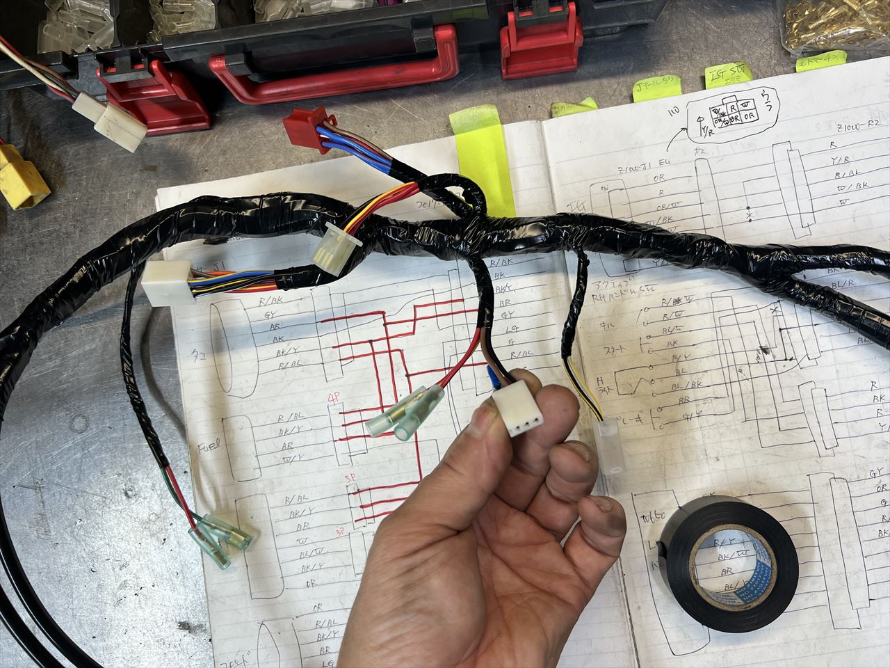 改造メインハーネス3台分ほぼ完成です。あとは現車ごとに、そのイグニッションスイッチに合わせて改造すればOKです。