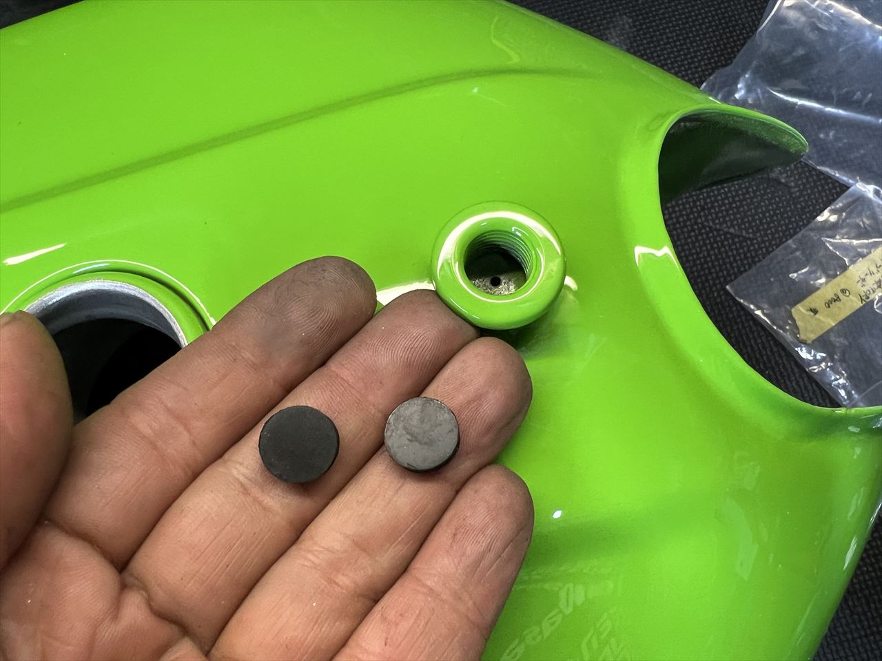 S1ブリーザーですが、穴は通じていて機能しますが、ストリートでは機能するといろいろ煩わしいので、ゴム板を仕込んで塞いでおきます。