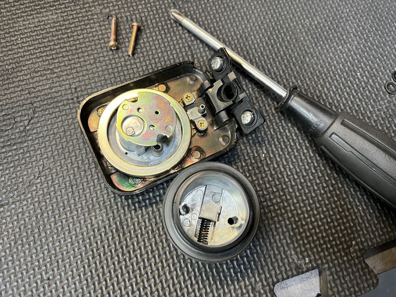タンクキャップは既存のものを使います。Oリングなどはへたっているので新品交換します。