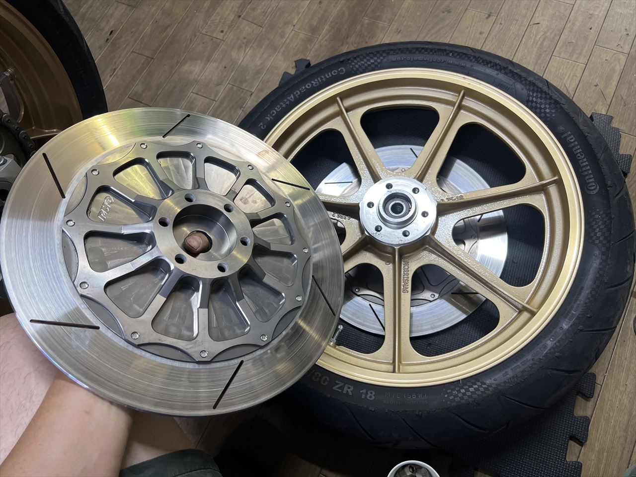 現状はドレミモーリスにPMC製6穴S1ローターの組み合わせ。左側も右側用のインナーを使ってフラットにしてありますね。