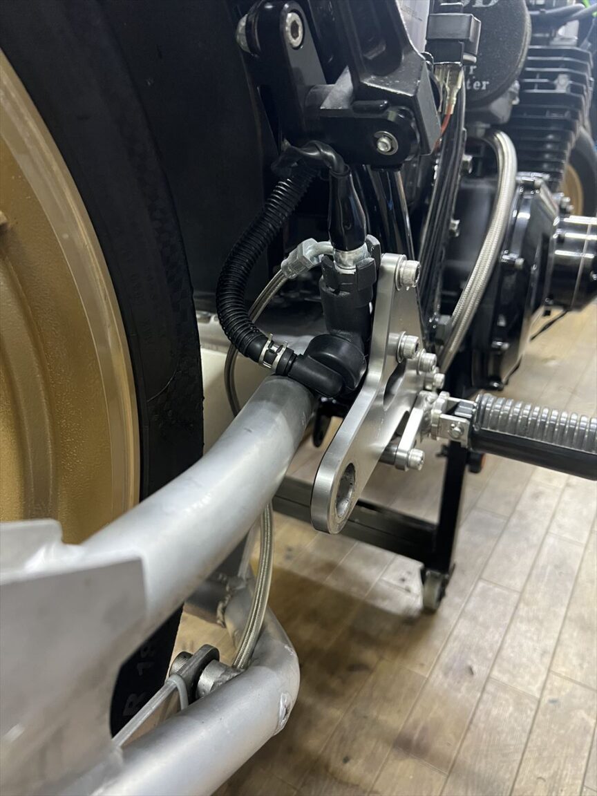 これで純正寸法に戻りました。ピボットを規定トルクで締めてもスイングアームはガタ無くスムーズに動きます。