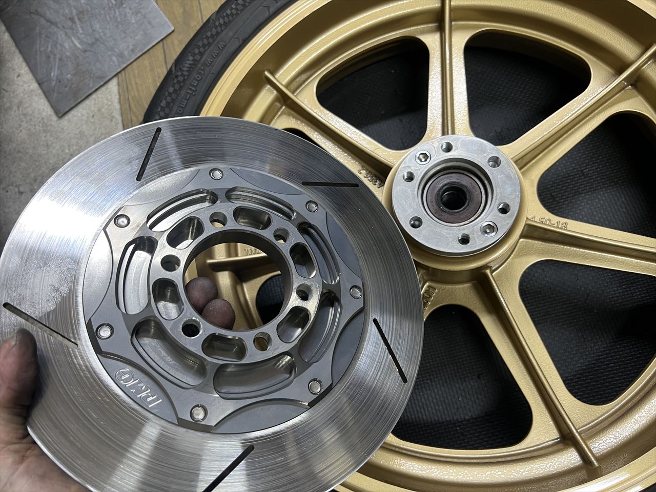 弊社のS1ローターに変更するので、製作する前にホイール周りの寸法を確認します。