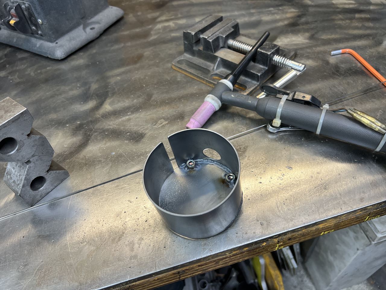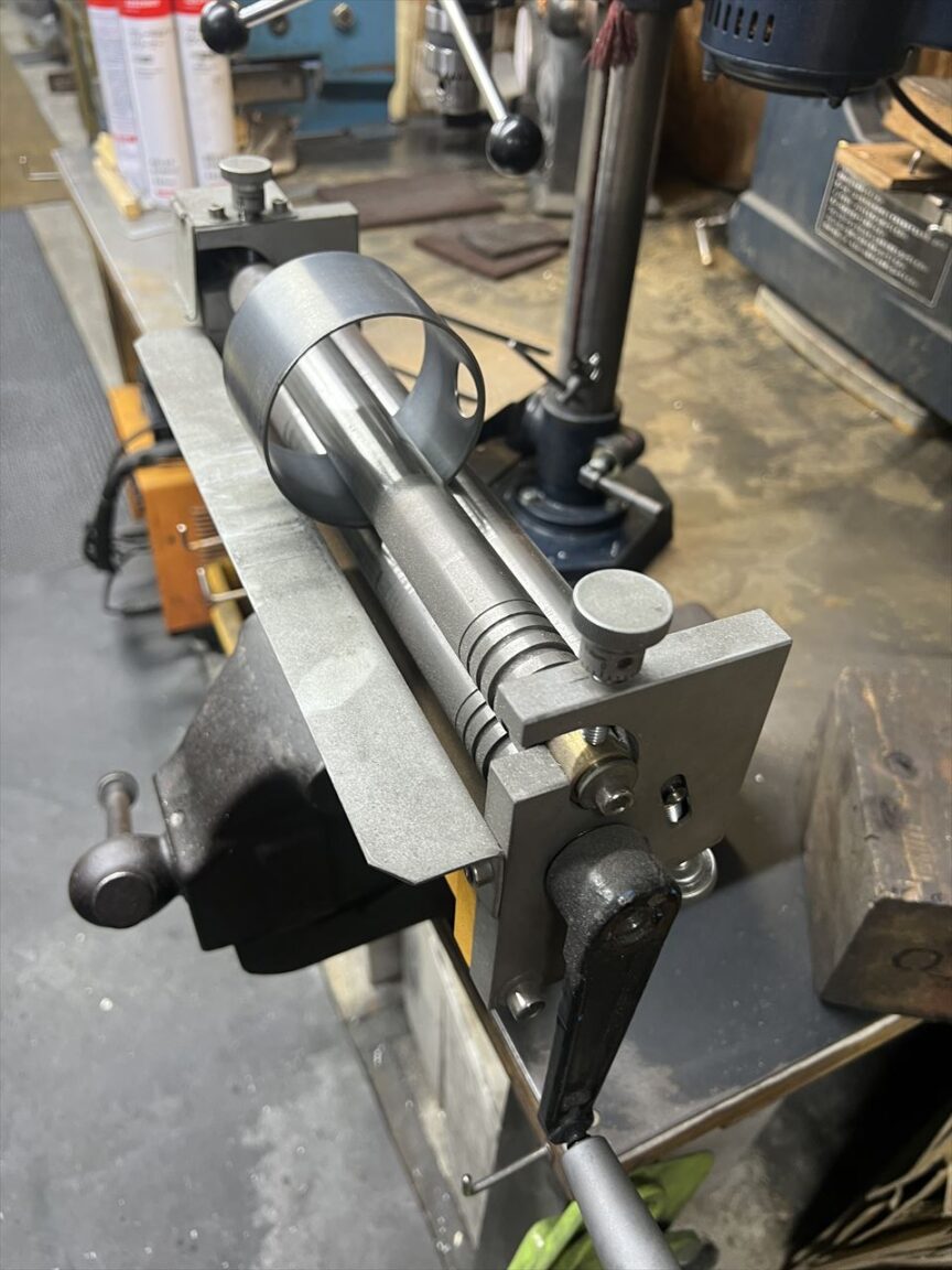こちらはスチールプレートをカールさせてメーターケースを作っているところ。