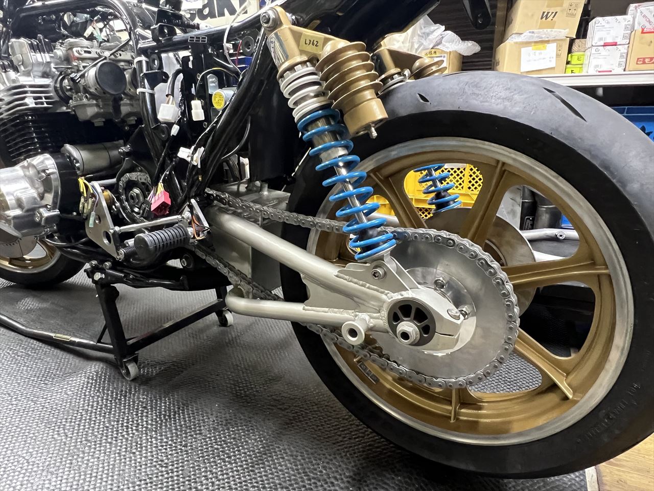 チェーンも取り付けます。ギヤ比は17×45Tコマ数は116リンク、サイズは530です。