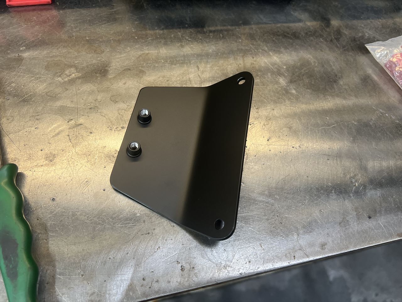 こちらはナンバーブラケットです。ジュラルミン3ミリ板を曲げて製作。