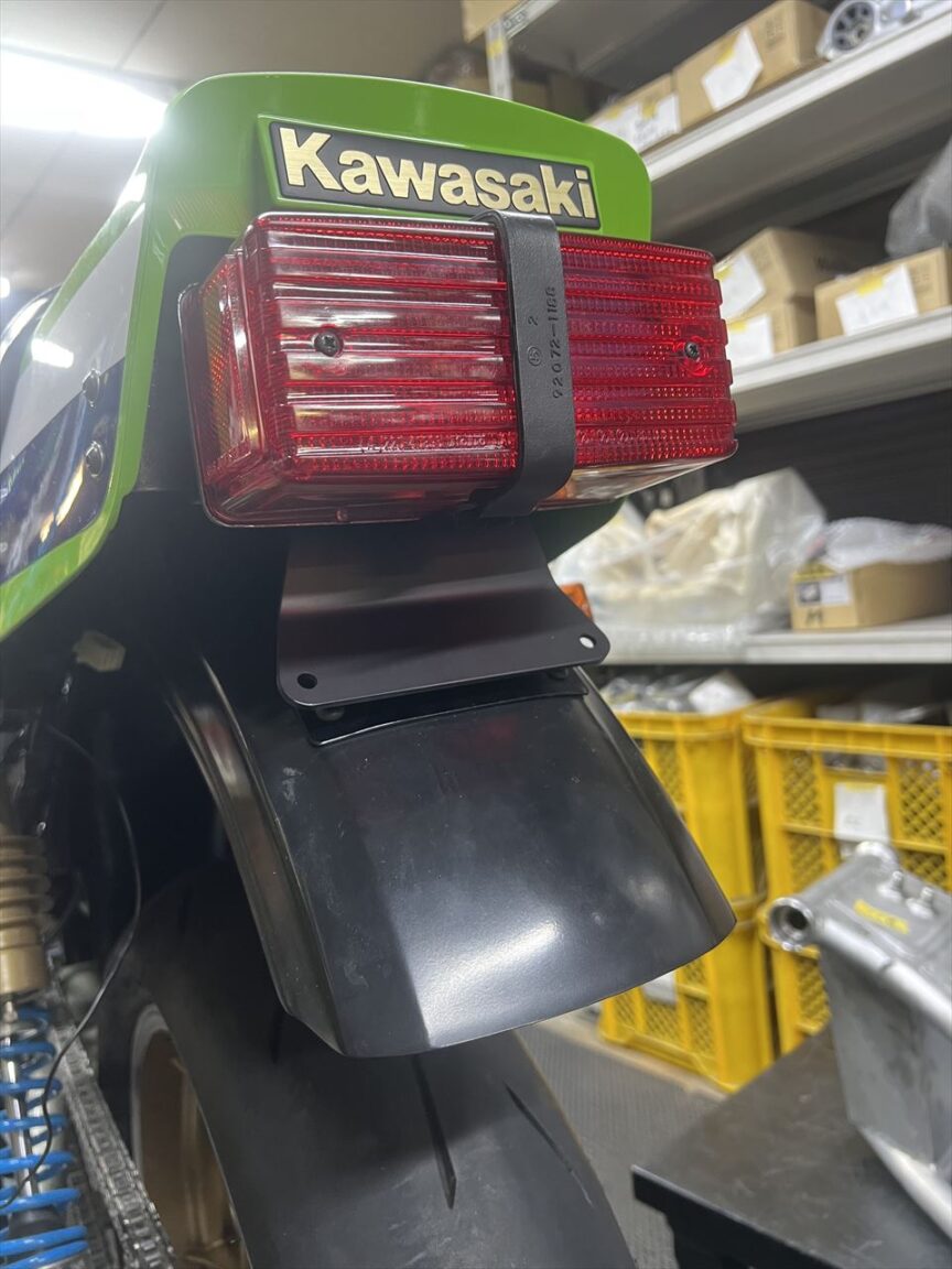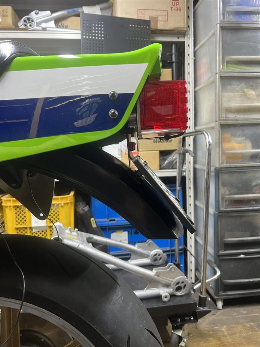 ナンバーを取り付けるとこんな感じ。リヤフェンダーに添わせると整います。