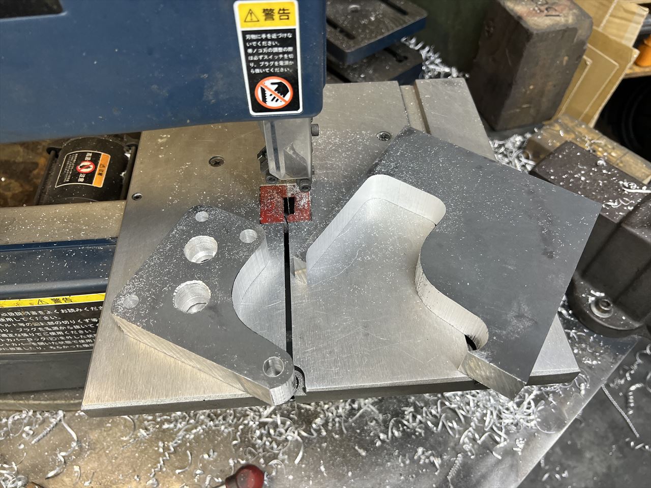テンプレートを元にバンドソーで切り出します。