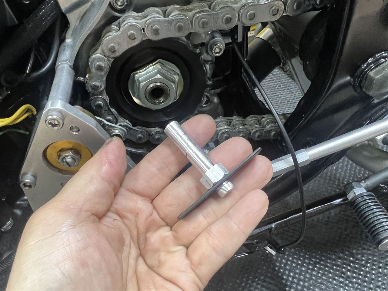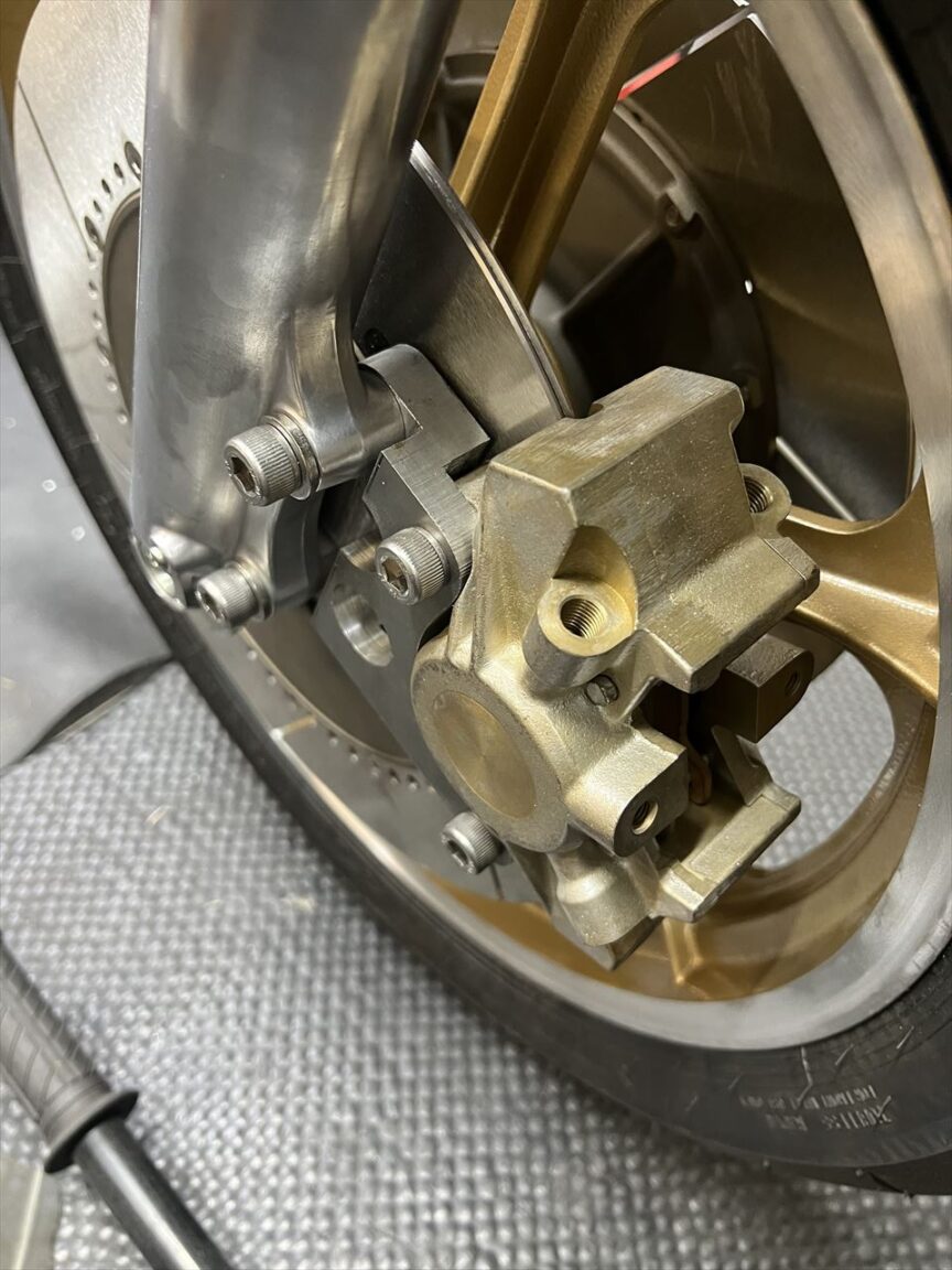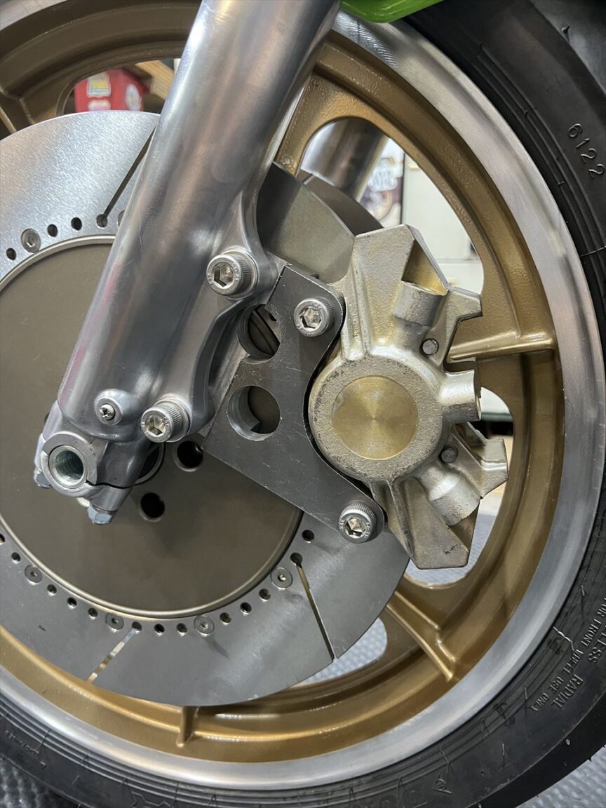 ローターとキャリパーのアライメントを微調整し、外観を整えたら完成です。