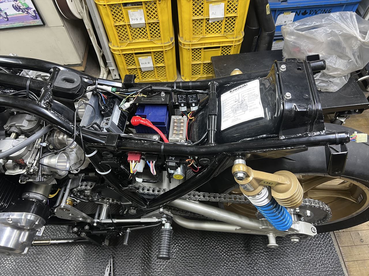 Z1000R2 Y.K様 ワークスS1仕様製作 メインハーネスの艤装とワークスキャリパーサポート製作