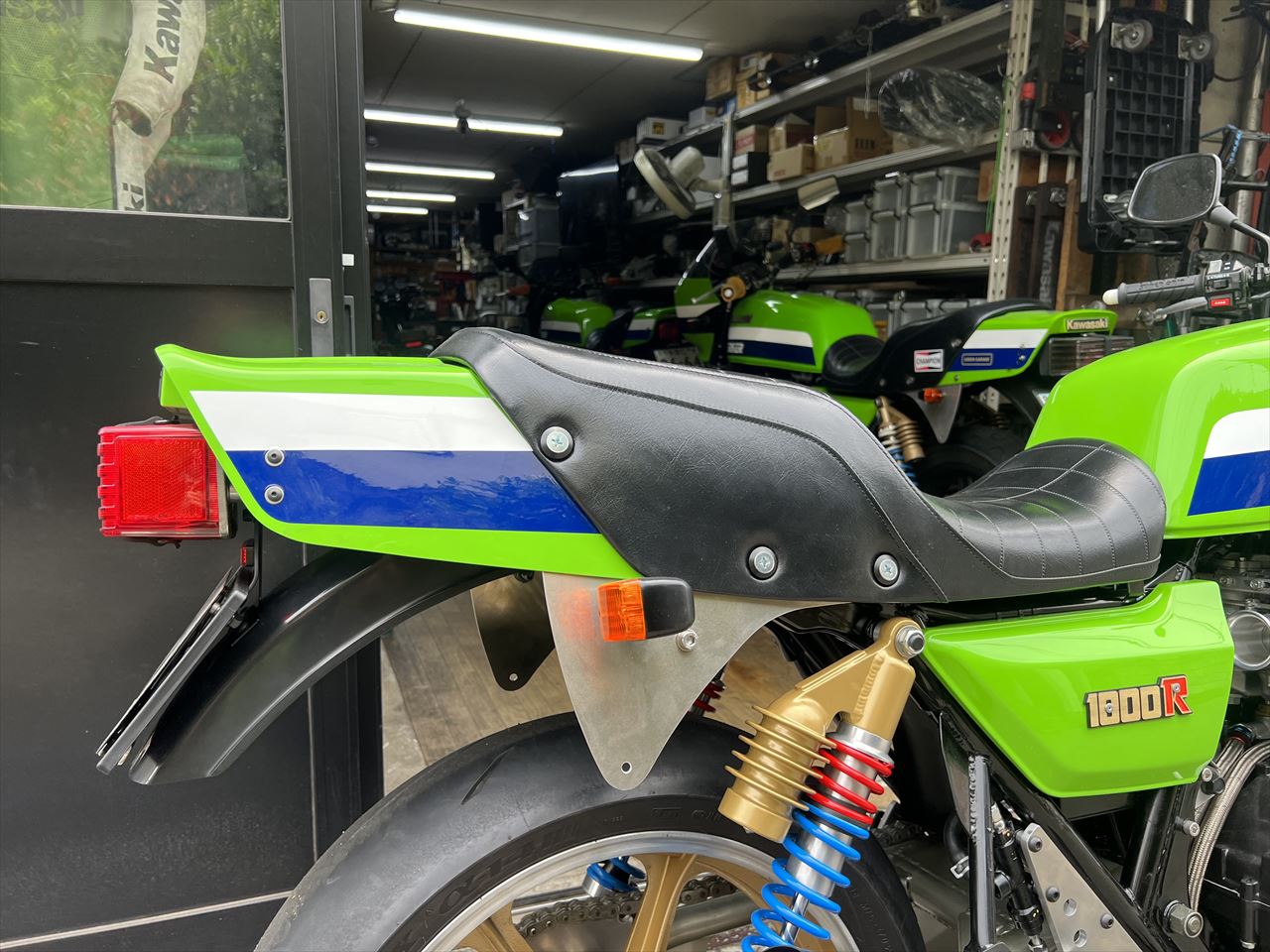 シートはスプリームS1タイプ、フジツボはシートとテールカウルを固定するための本格仕様。シートレールはカットして、S1同様短くなっています。