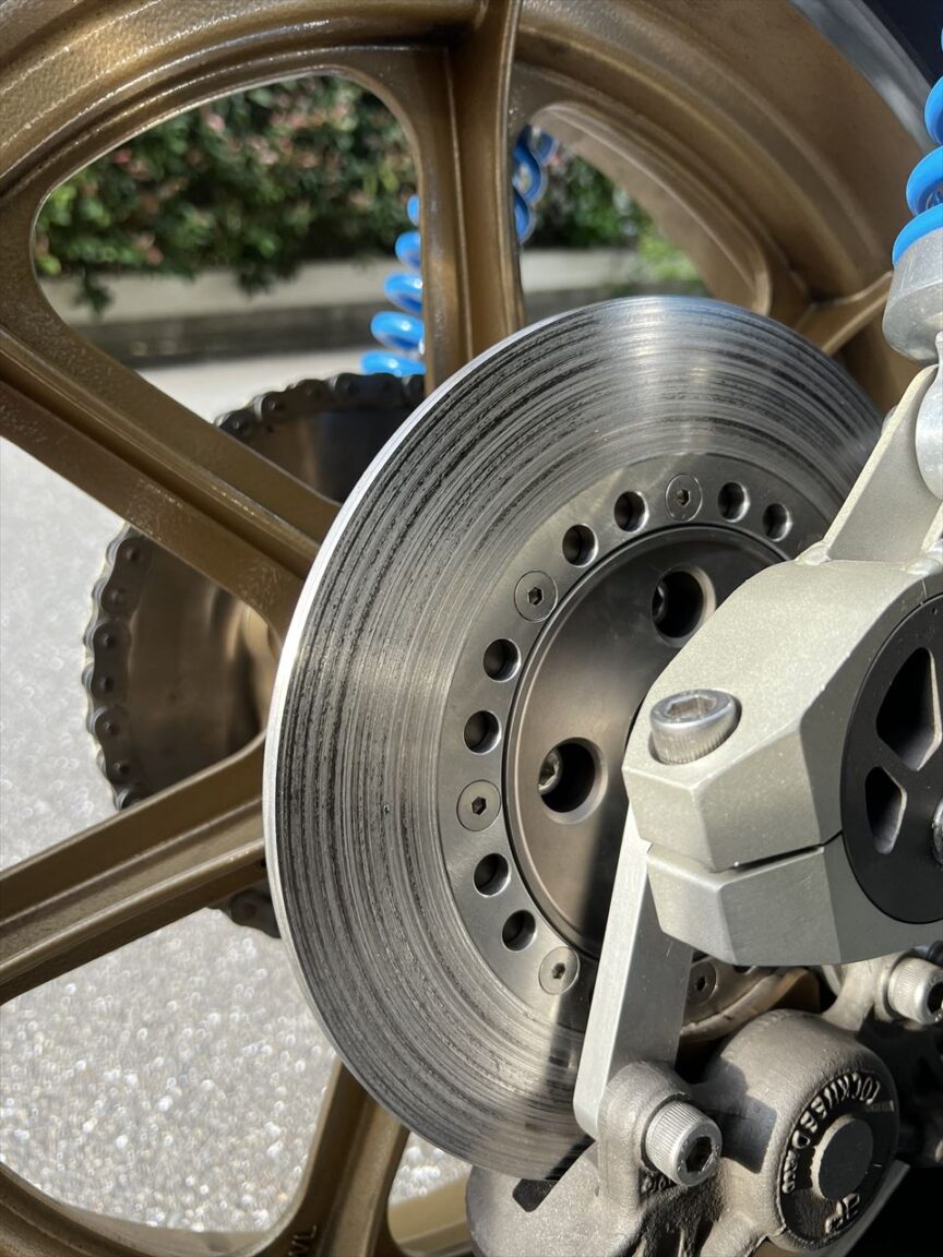 ローターの初期の当たりをつけるのが非常に難しいのですが、今回は柔らかめのセミメタルパッドを使用して、ローターの慣らしを徐々に進めます。