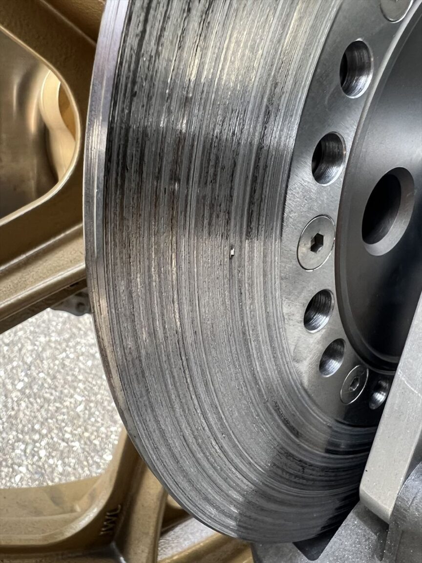 フロントローターの当たりはこんな感じ。まだフルブレーキングはしていません。