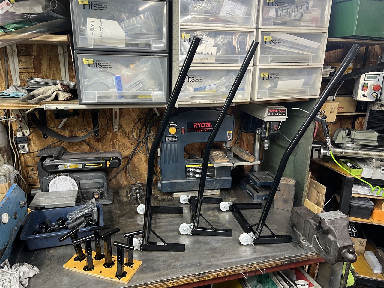 フレームスタンドを製作中です。今回は3台分作っていますが全て売約済みです。ご注文があれば2ヵ月に1回程度製作する予定なので、ご予約は随時受付中です。LINE、メールなどでお問い合わせください。