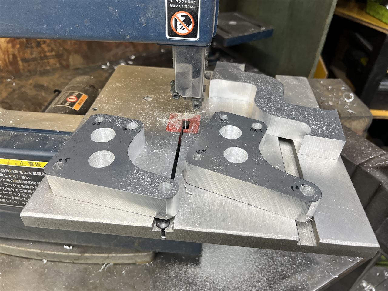 穴開け後、バンドソーで切り出します。