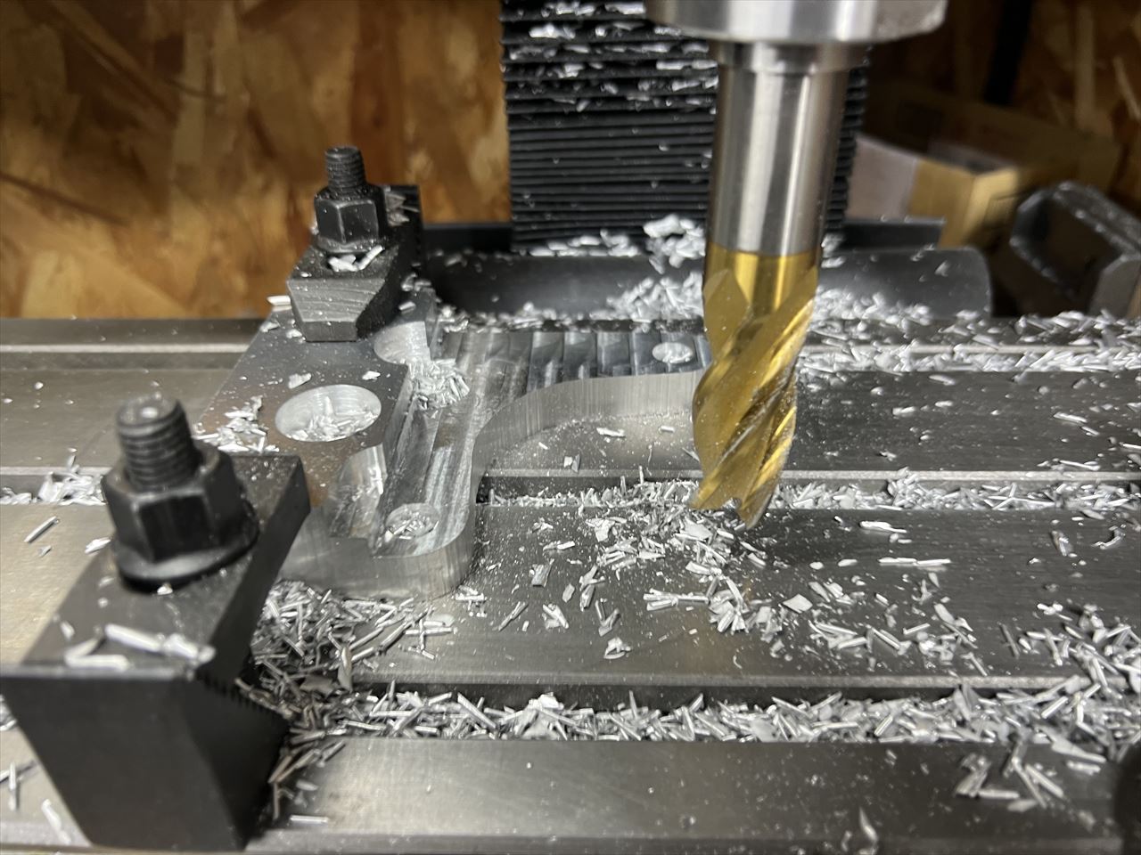 フライス盤で段付き加工します。車両の個体差があるので、段付きの深さは現車合わせとなります。