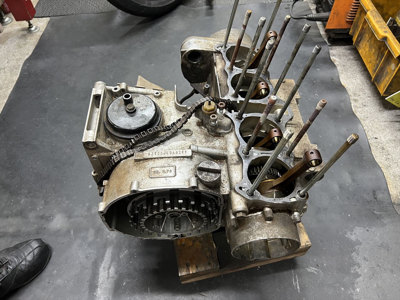 車両はZ1100-B2なのですが、今回のエンジンは「KZT00JE」で、型式はZ1000Jと同じですが正確にはポリスのエンジンです。本来の組み合わせと違うのですが車両は輸入新規登録なのでこのJエンジンで登録することにします。