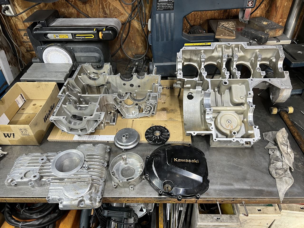 塗装を依頼する際は、残ったガスケットを剥がし、軽く洗浄してから塗装屋さんに送ります。ヘッドカバーは別途準備中、ヘッドは他の車両で使っていたものを修理して使うので今回は含みません。塗装完了後にシリンダーボーリングなど進める予定です。