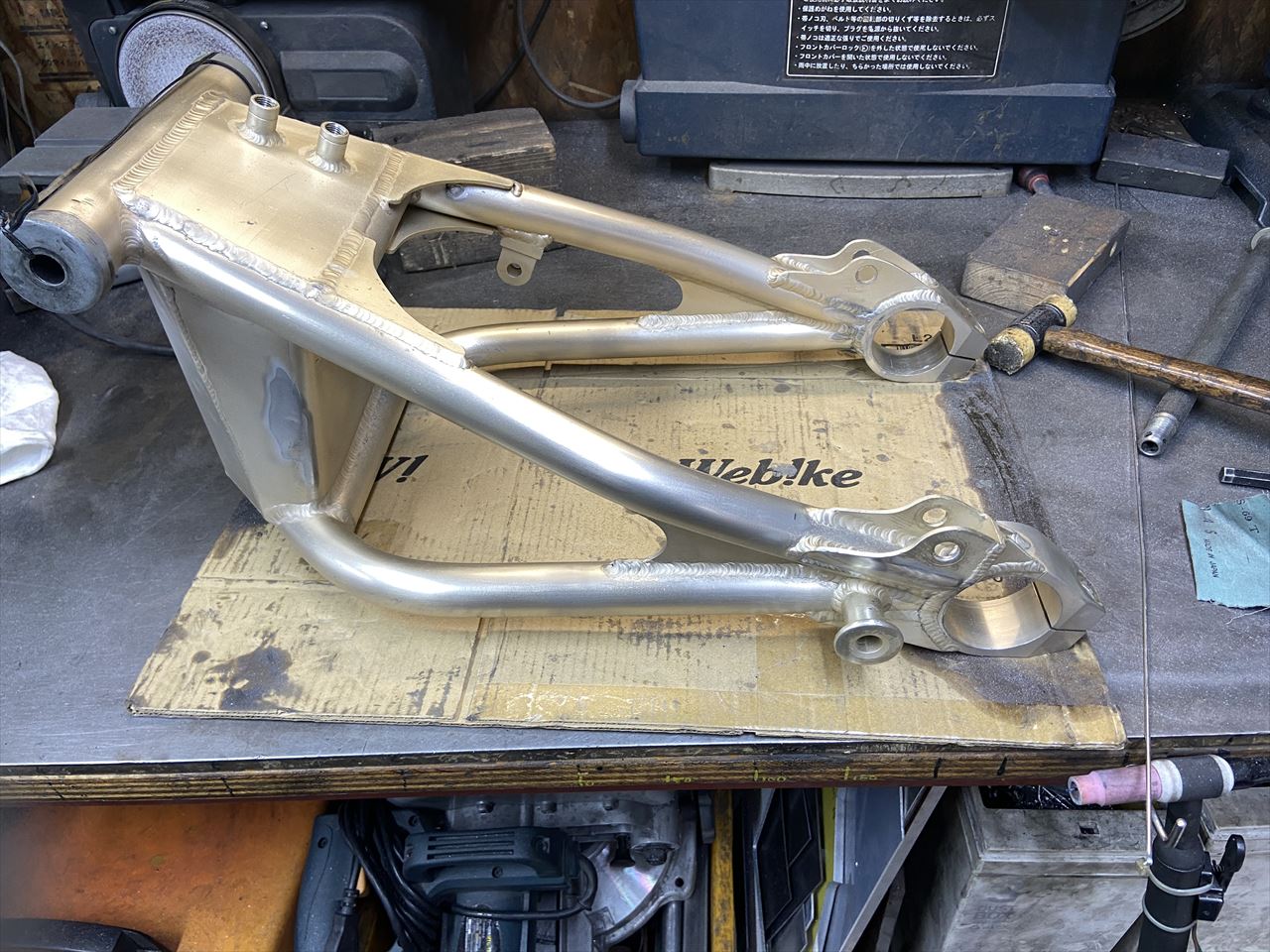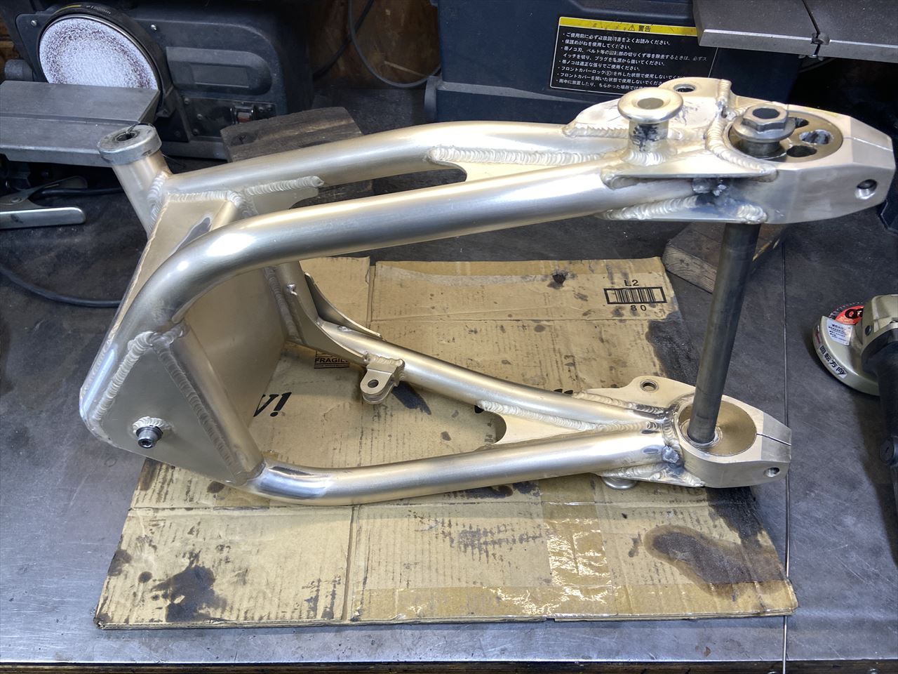 先ずはスイングアームから。お持ち込みのこちらのフルレプリカ品に交換します。