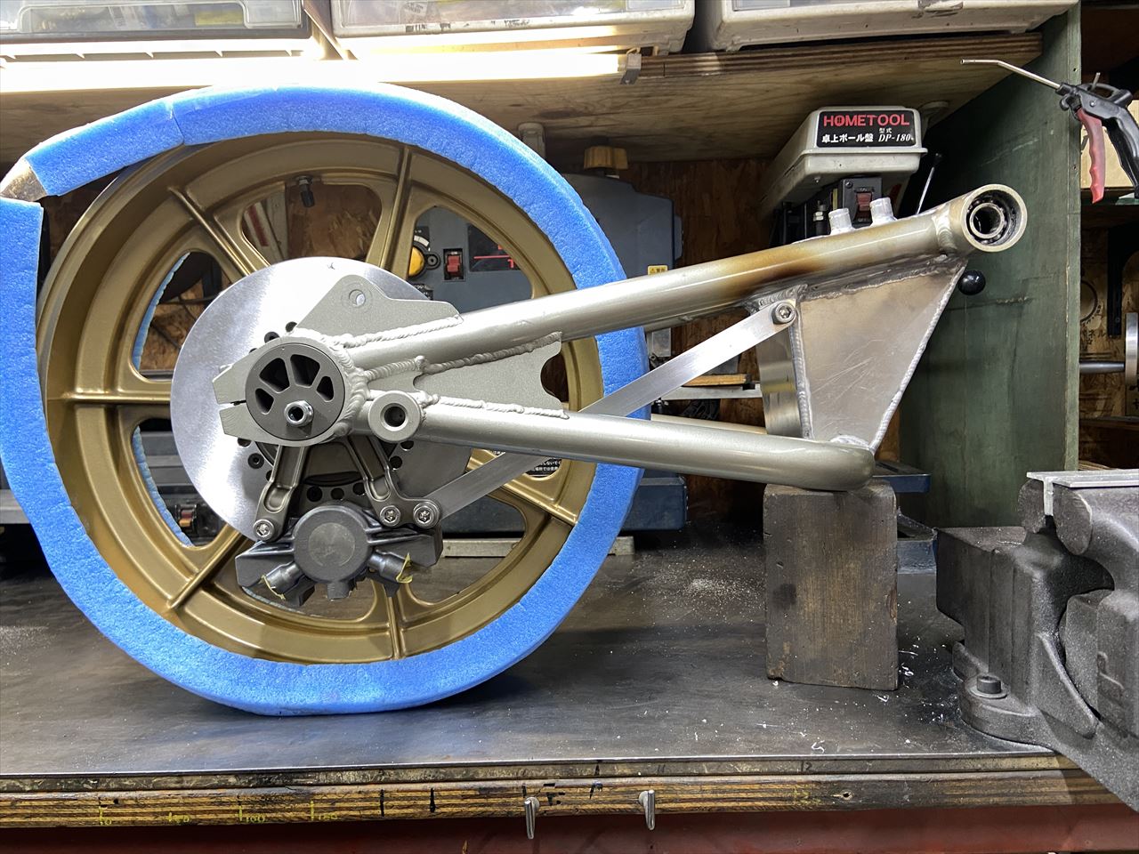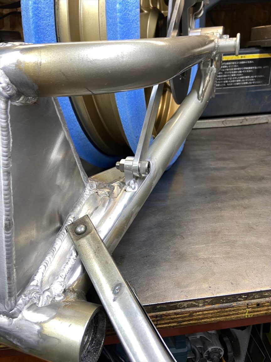トルクロッドの長さもちょうどいい感じになりました。このあとスイングアームは塗装します。