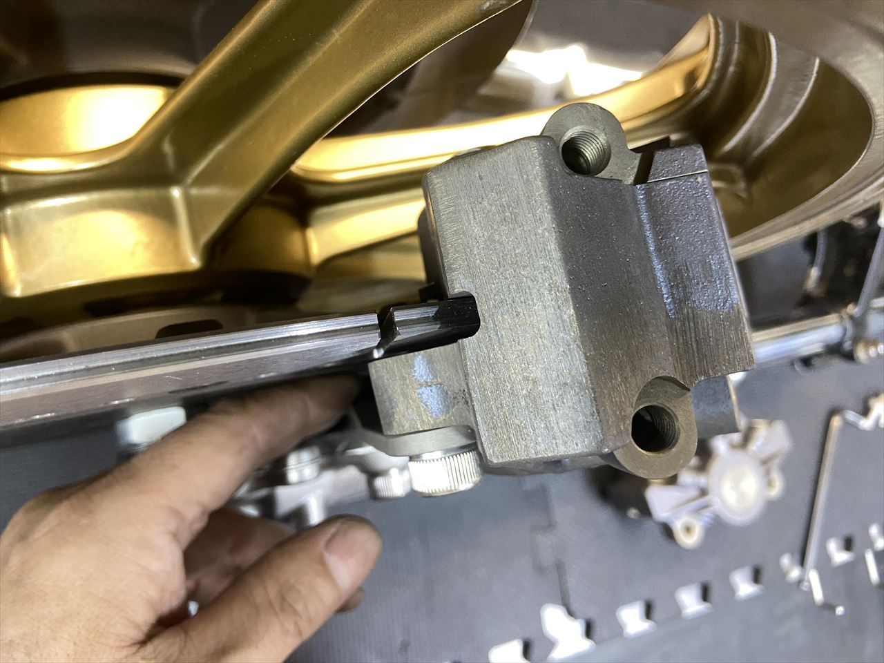 S1キャリパーは特にセンター合わせが重要です。最終的にはシムで微調整します。