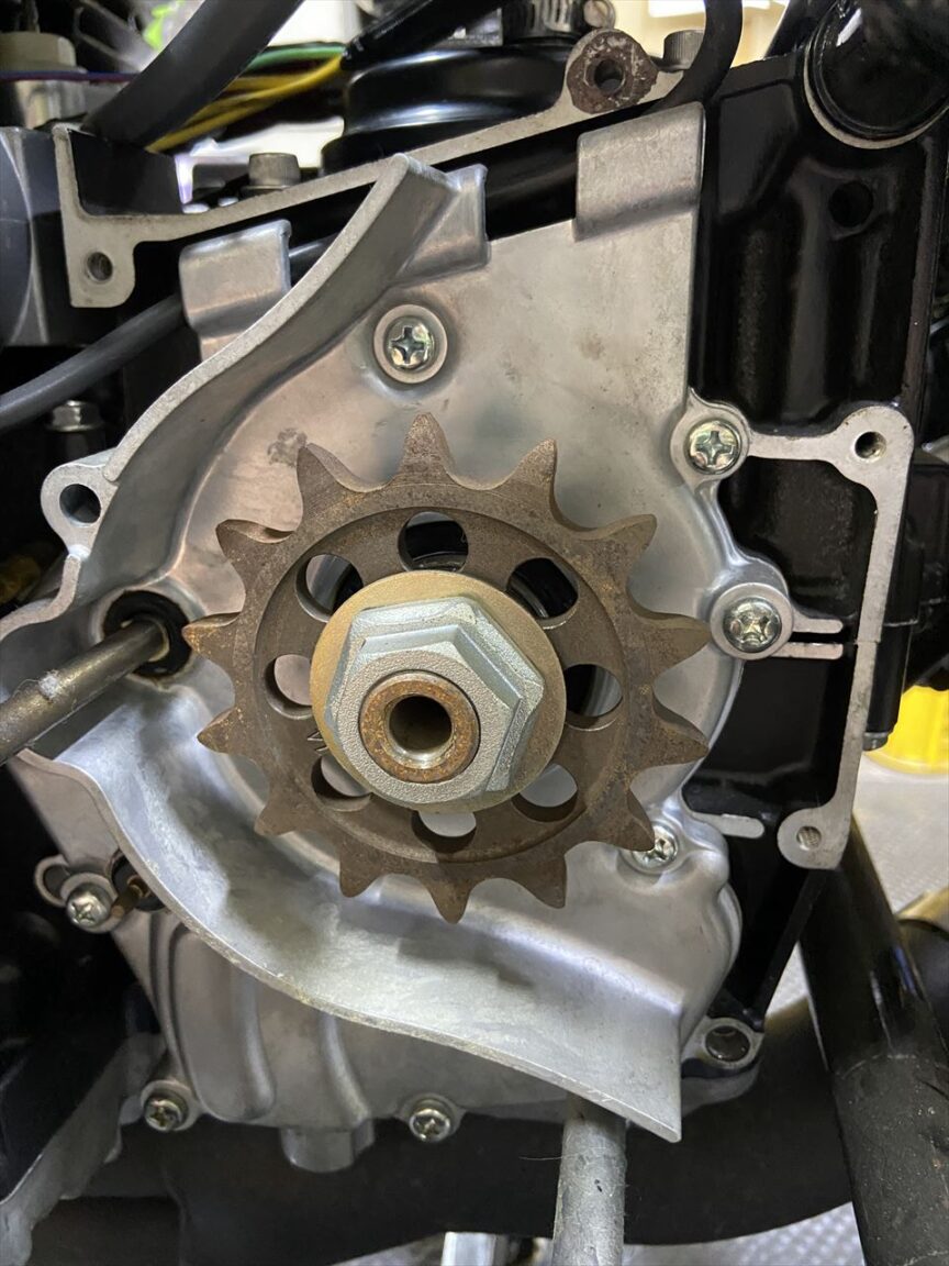 スプロケ奥のカラーはロングタイプが付いていますね。