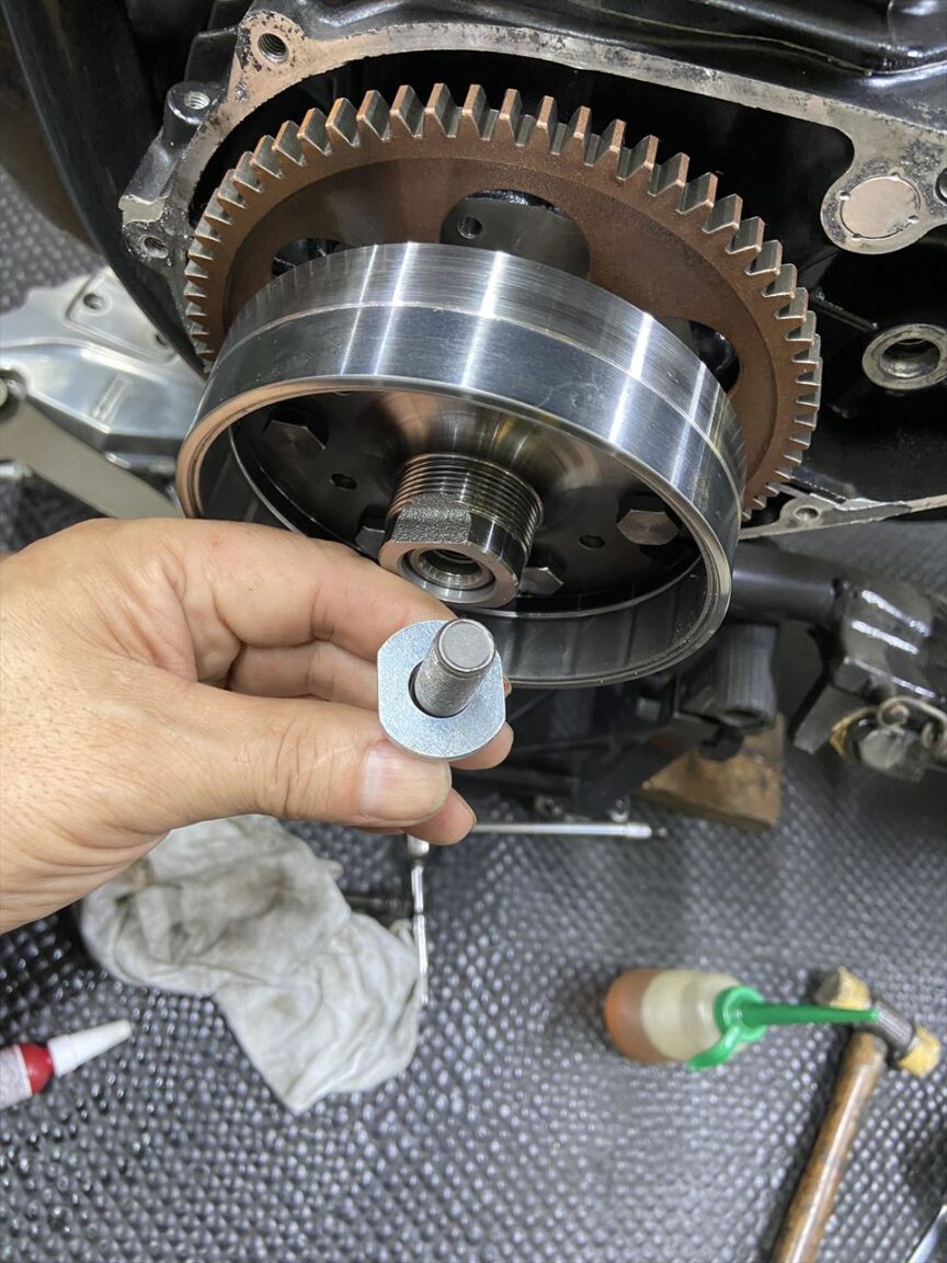 薄型のジェネレーターローターを仮組します。スターターギヤにダンパーのフリクションがあるか確認します。ダンパーの厚みはこれでちょうどいいようです。