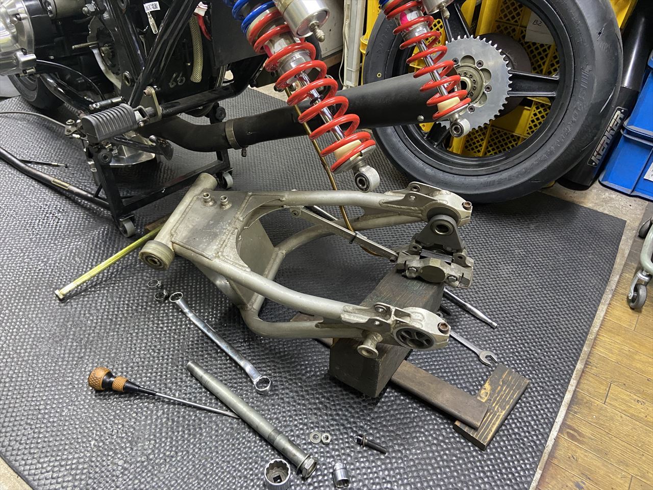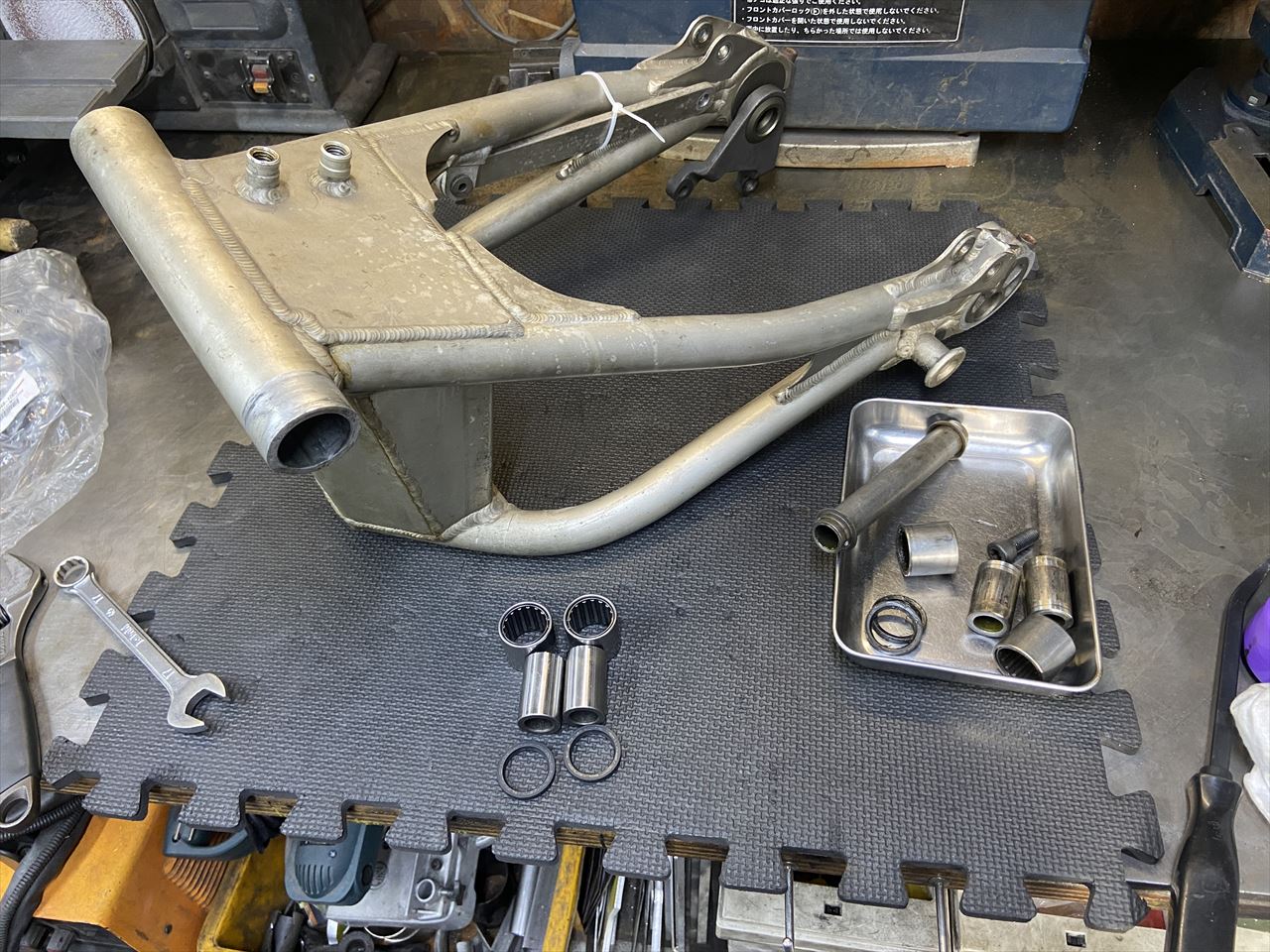 続いてスイングアームを分解点検します。