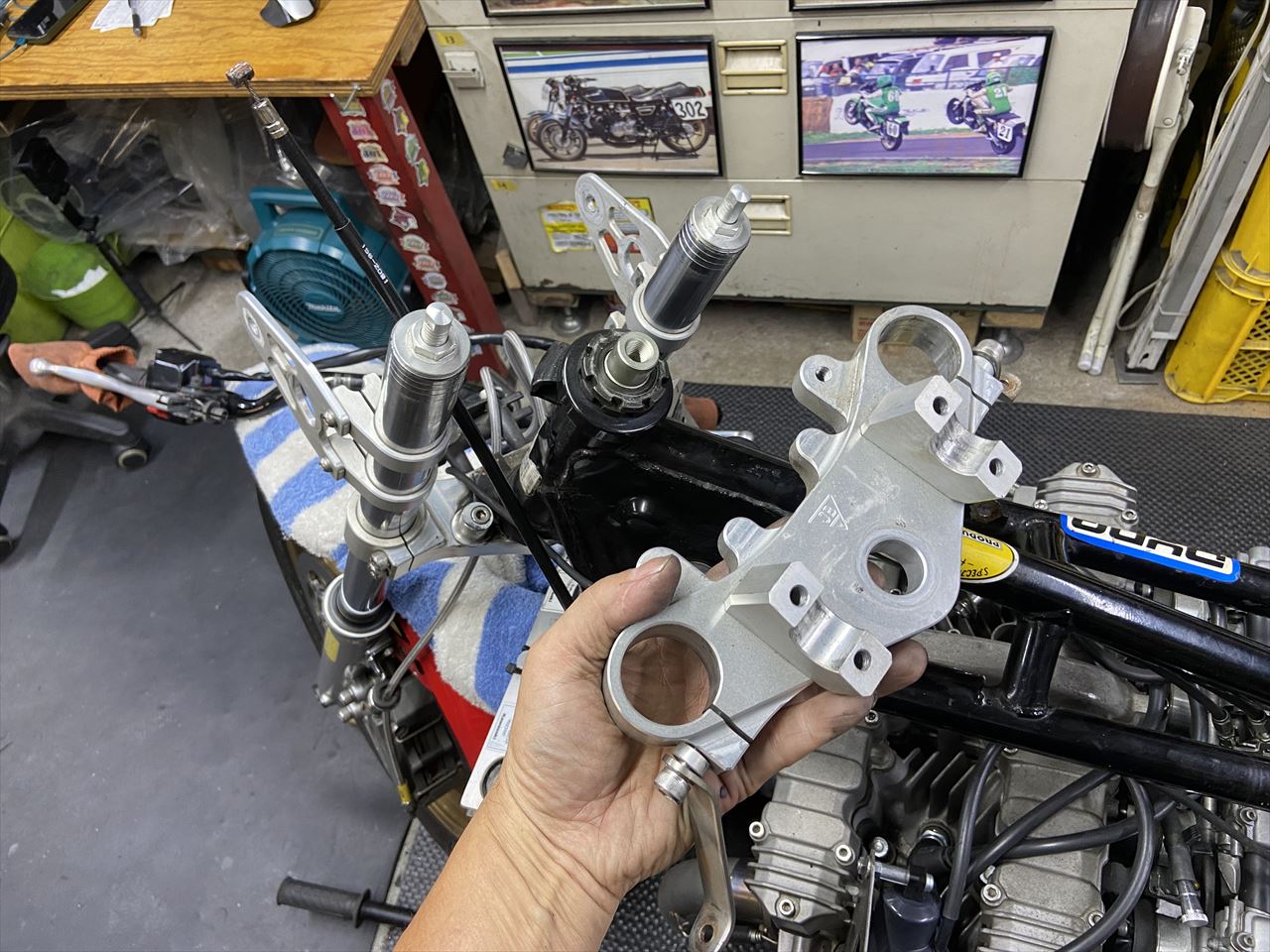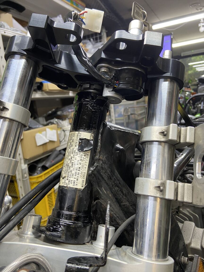丸メーター化に伴い、アッパーステムを変更します。