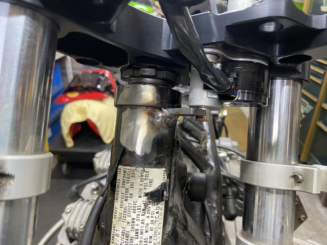 エリミのイグニッションスイッチに合わせてストッパーを溶接します。
