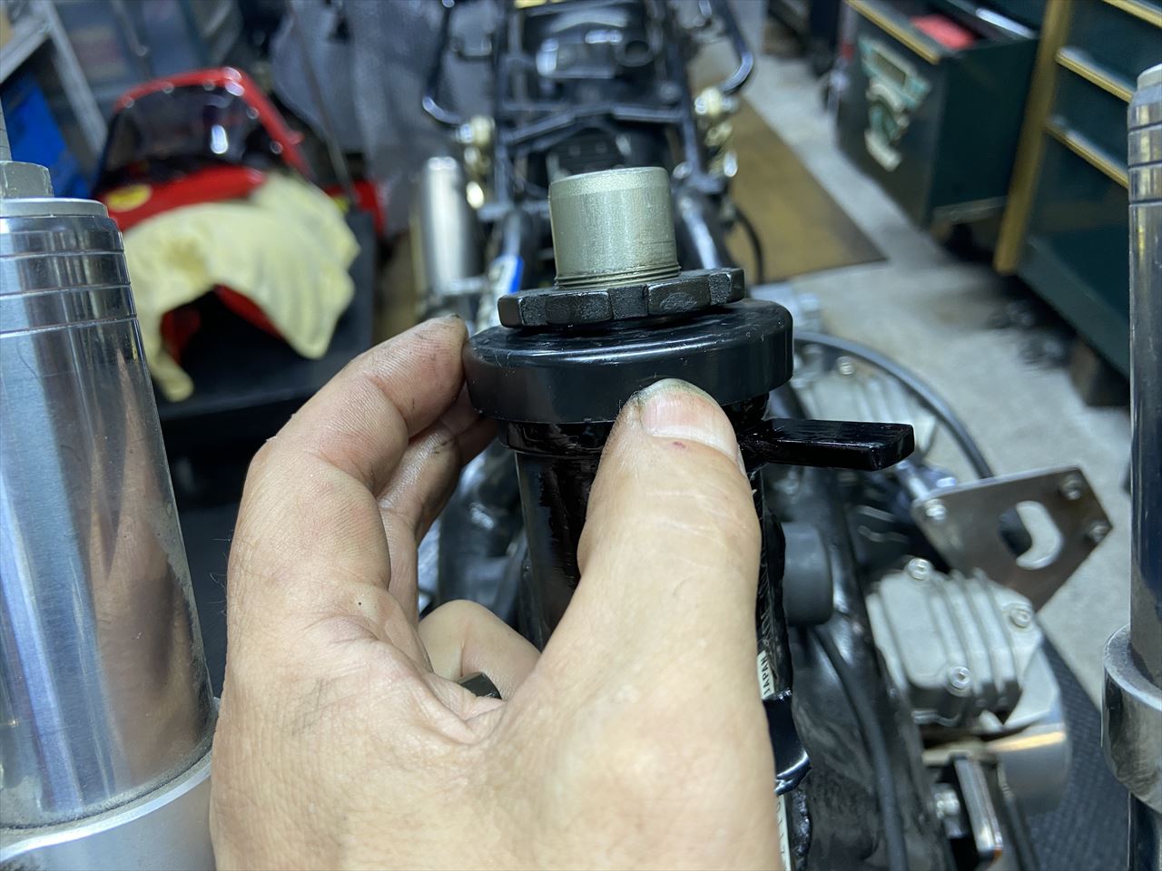 既存のアッパーステムを外します。