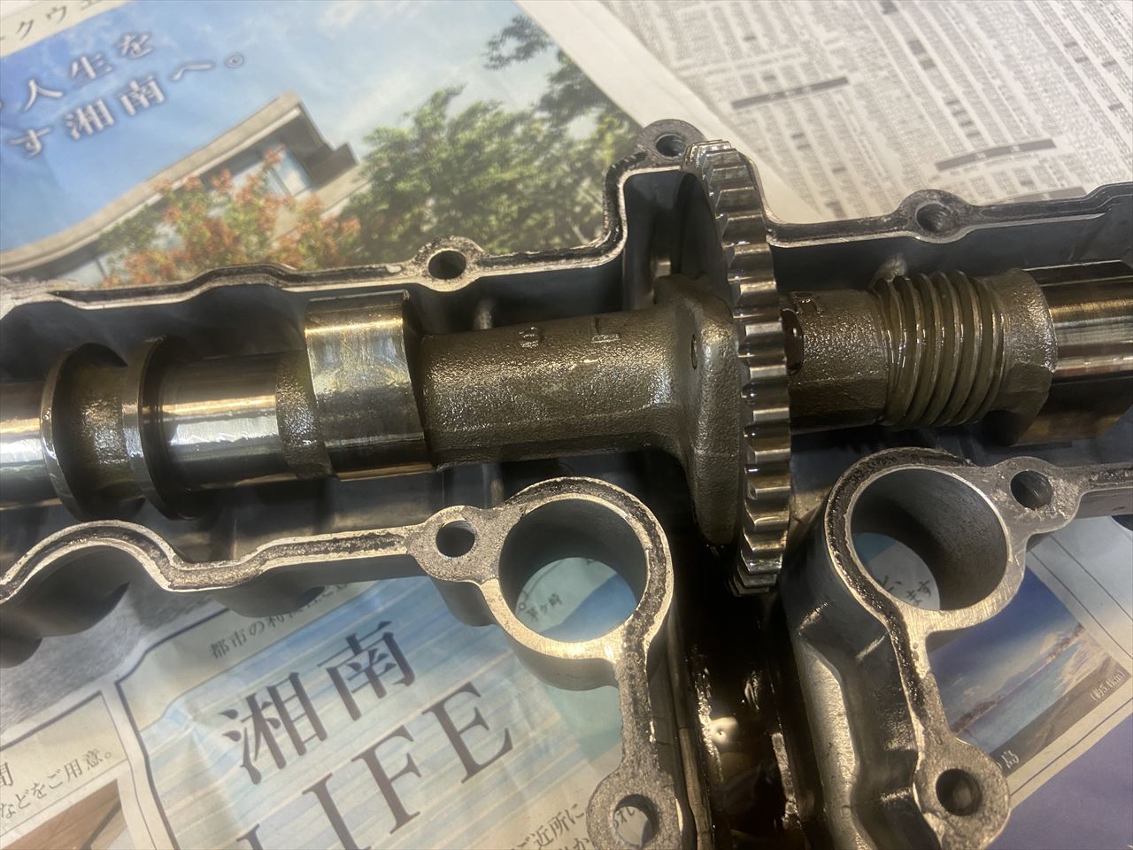 カジリのあるカムは替わりが無いので継続使用します。カジリが新しいリフターを攻撃するので、今後は定期的に分解点検した方がいいでしょう。摩耗が進むようだったらカム交換です。