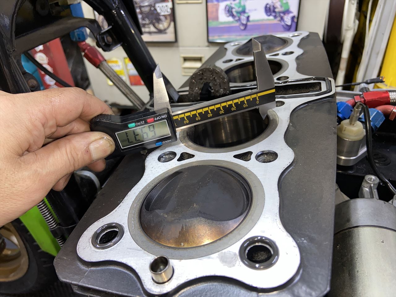 こんな感じの画像を撮り、提出書類のボア×ストロークの数値が現車の物であることを証明しなくてはいけません。因みにボア×ストロークはノーマルのφ69.4×66ミリです。