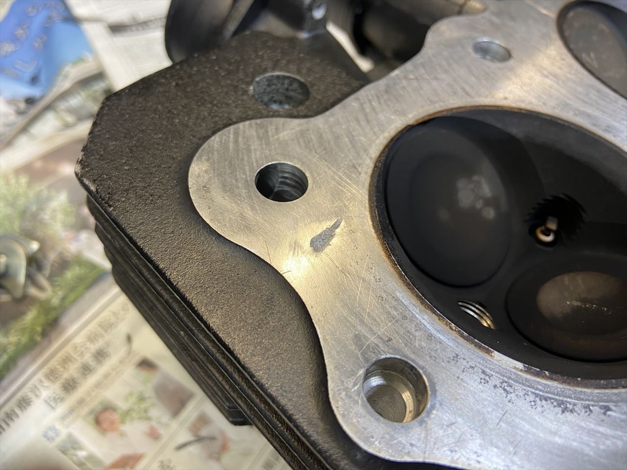 ヘッドデッキ面にはスタッドボルト根元の部分で段付きがあります。1ミリほど面研されているようです。