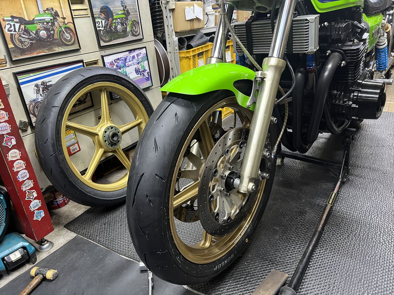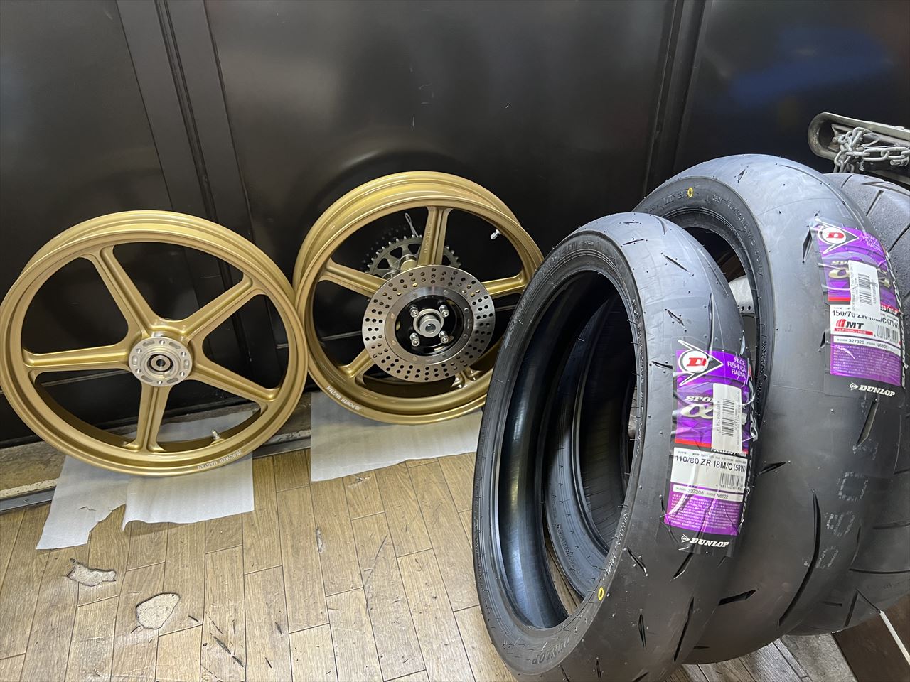 タイヤも古かったので新しくします。使用するのはダンロップα14Z 110/80-18 150/70-18 です。