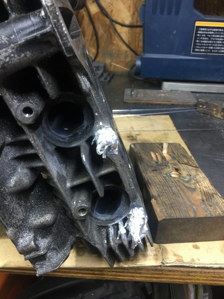 1ヶ所は穴が割れて拡大しており、もう一方は溶接修理がずさんな感じです。