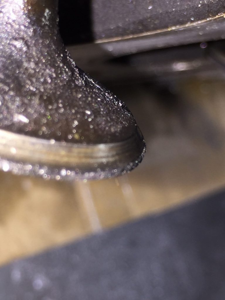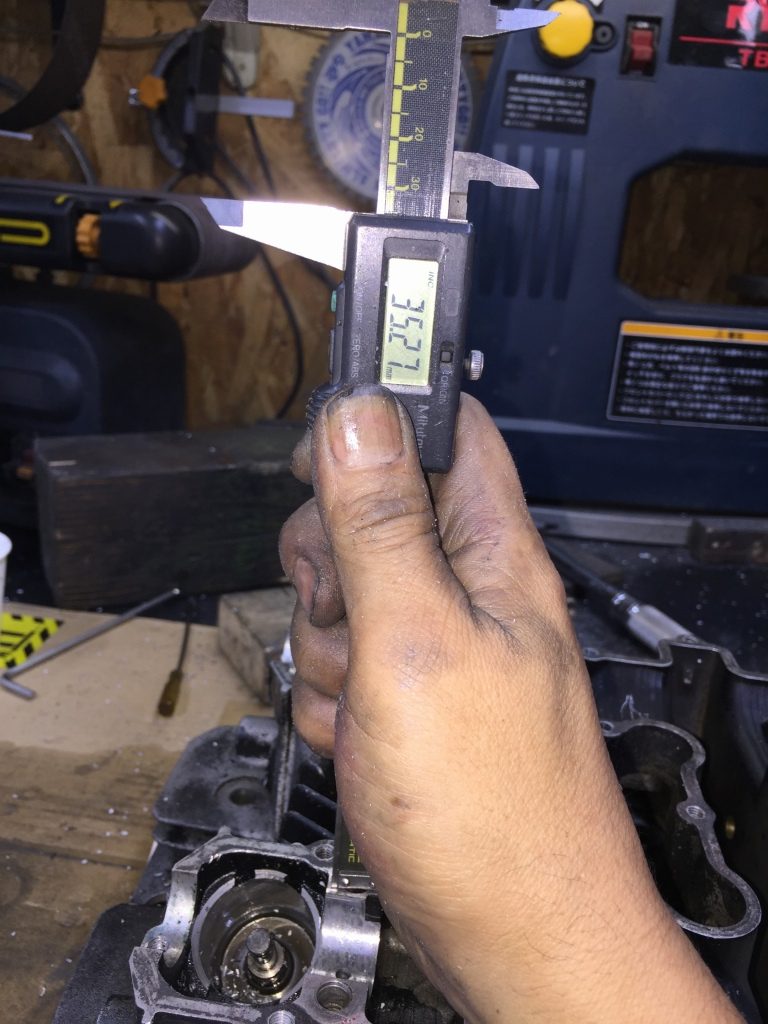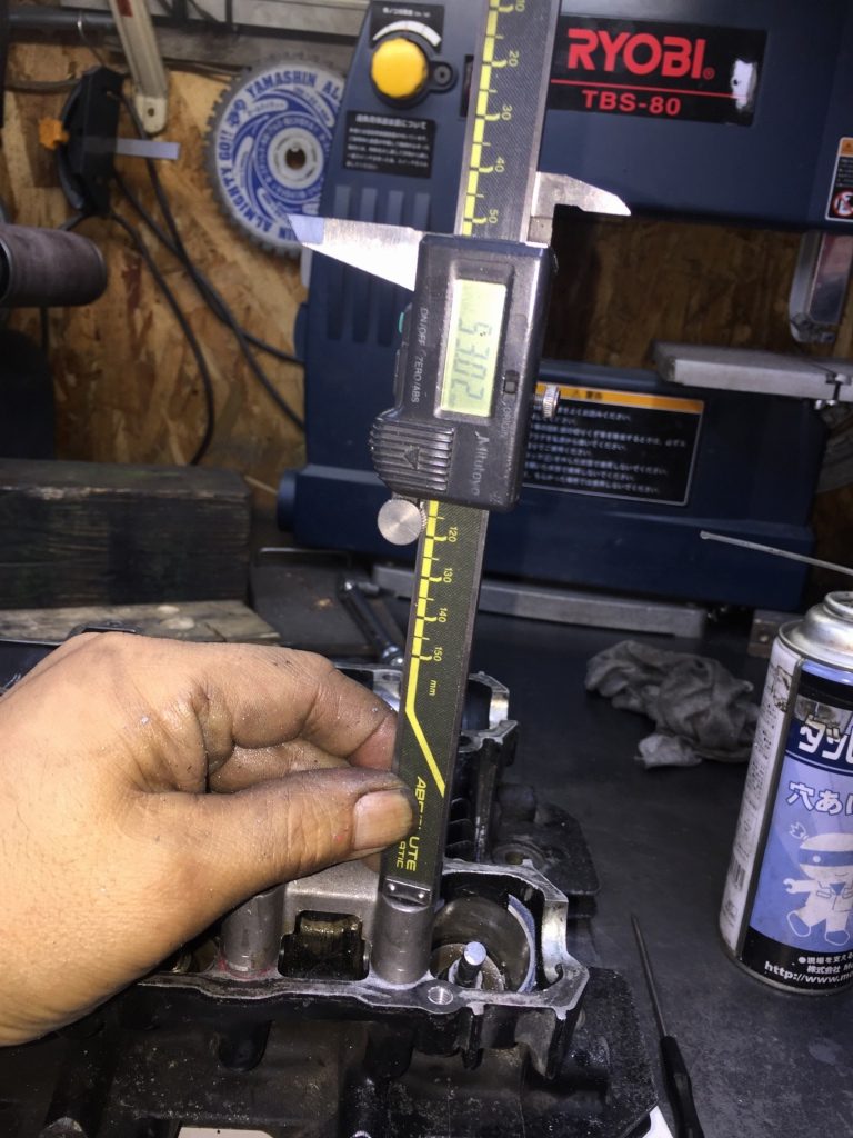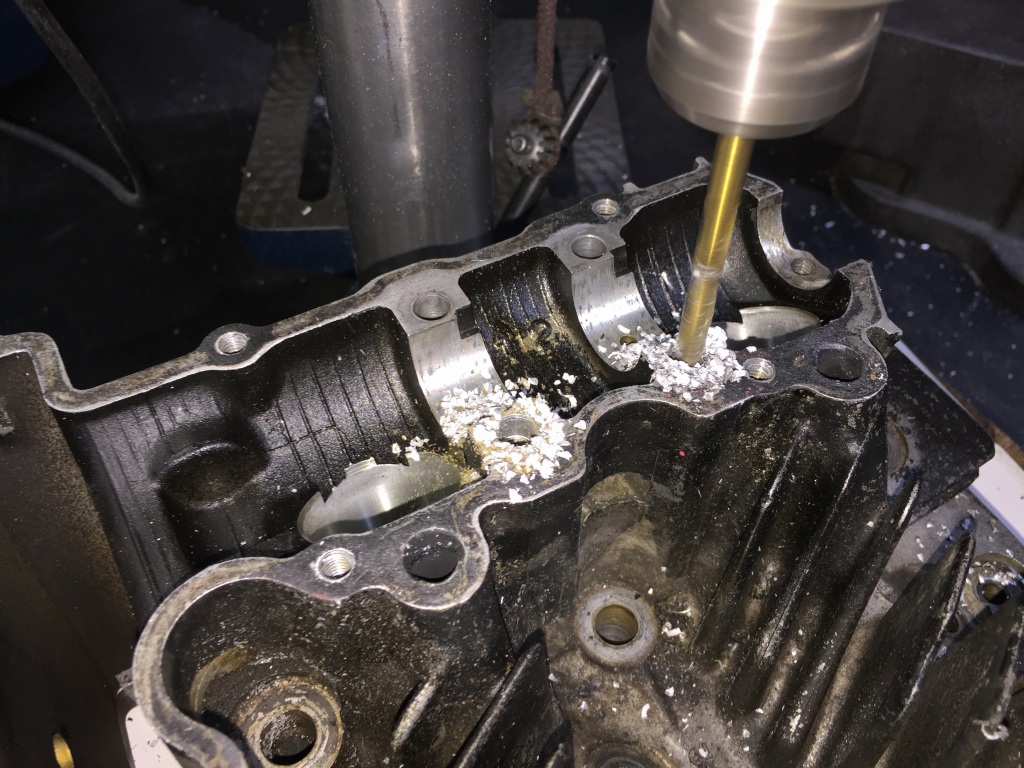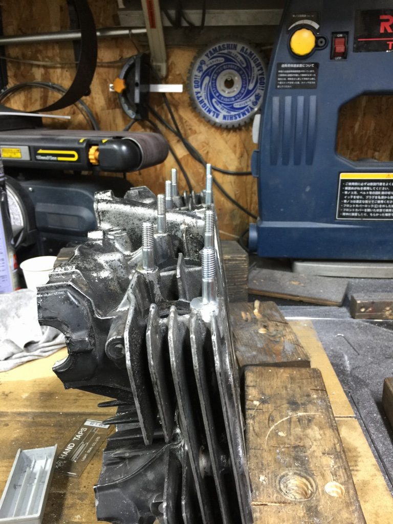 内側の列は、下にあるオイル通路まで余裕があるので、下穴は35ミリくらいまで開けます。