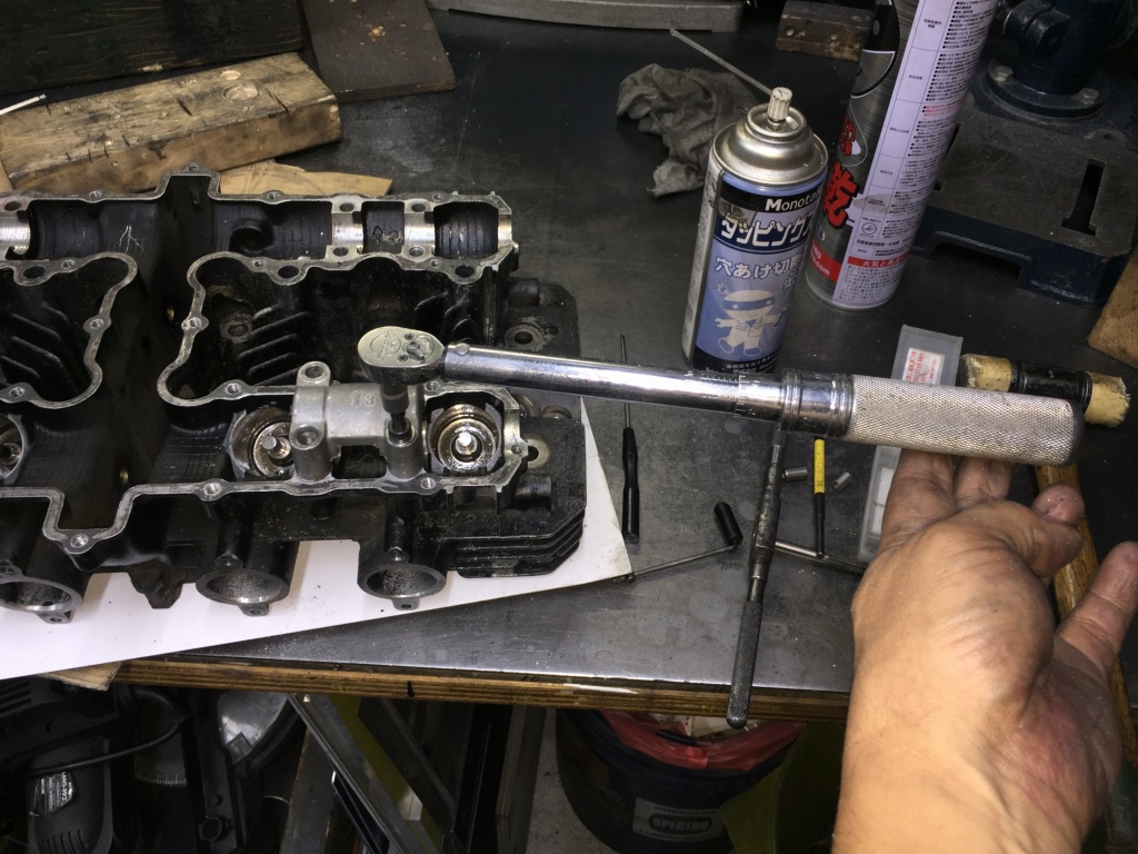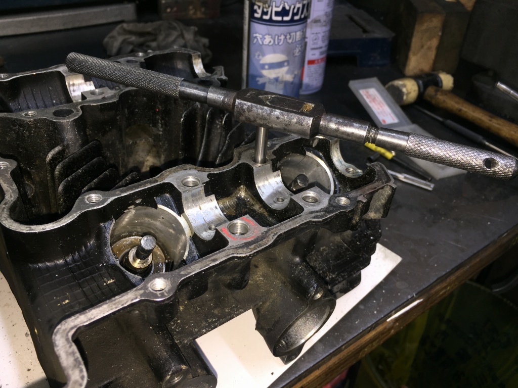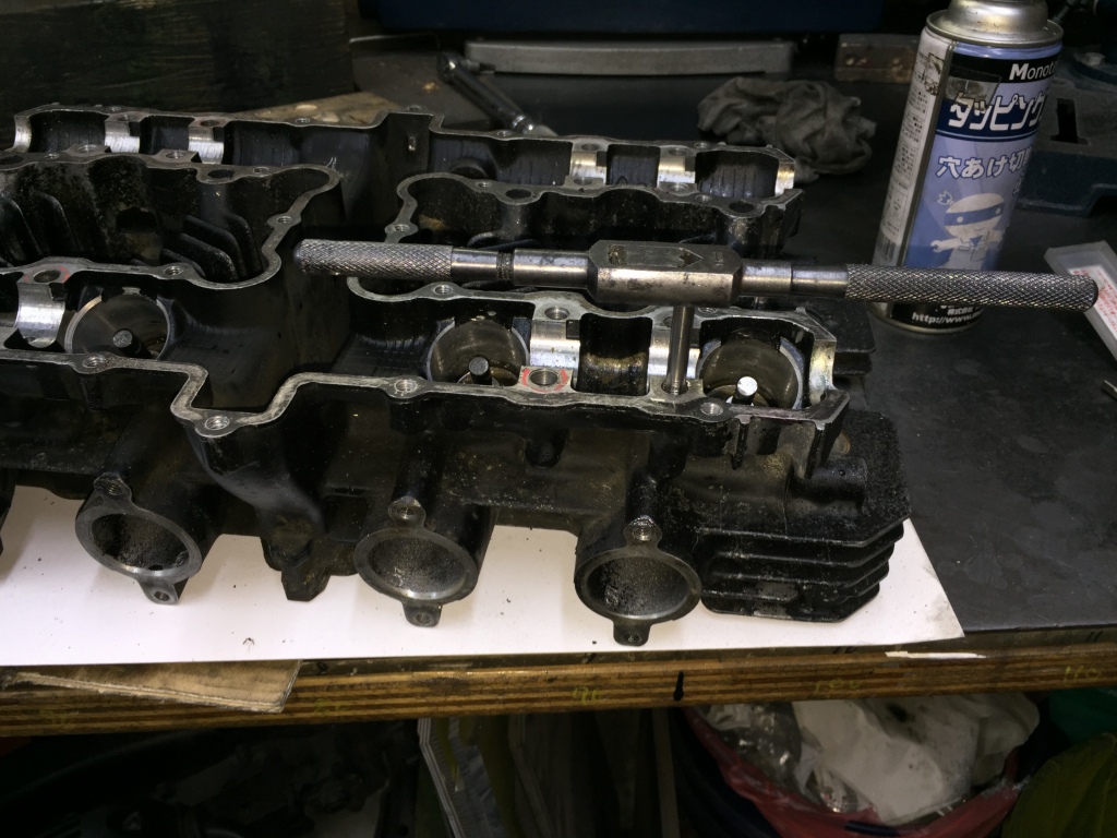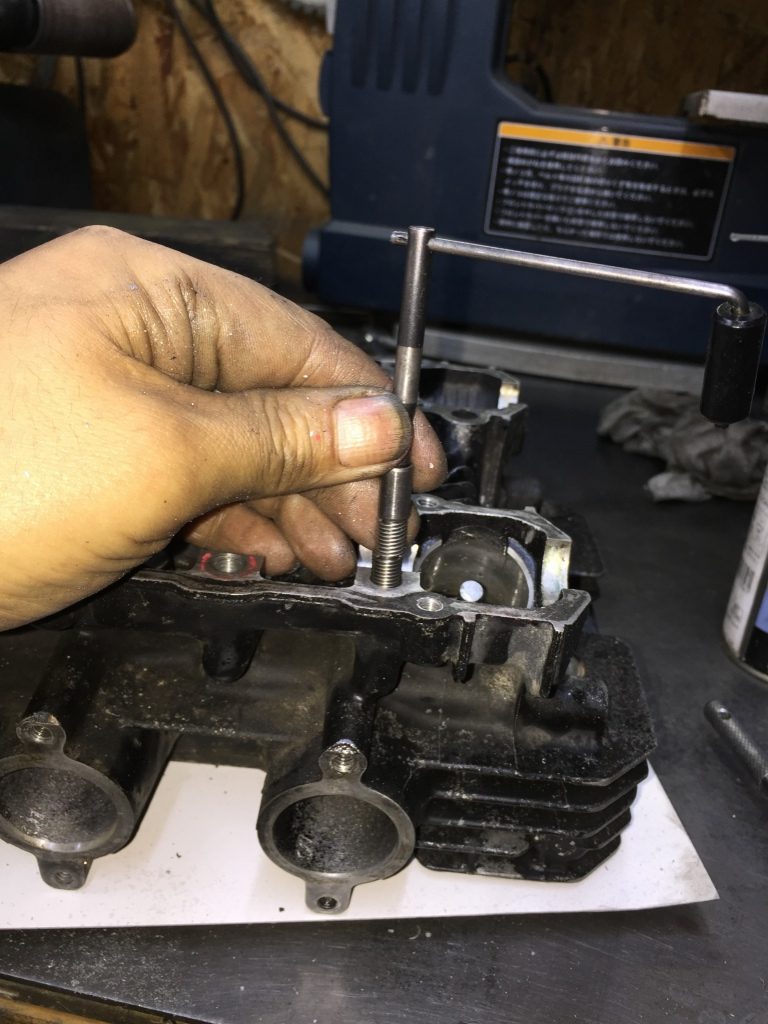 続いて、カムホルダーのネジを修理するので、一旦バルブを外します。