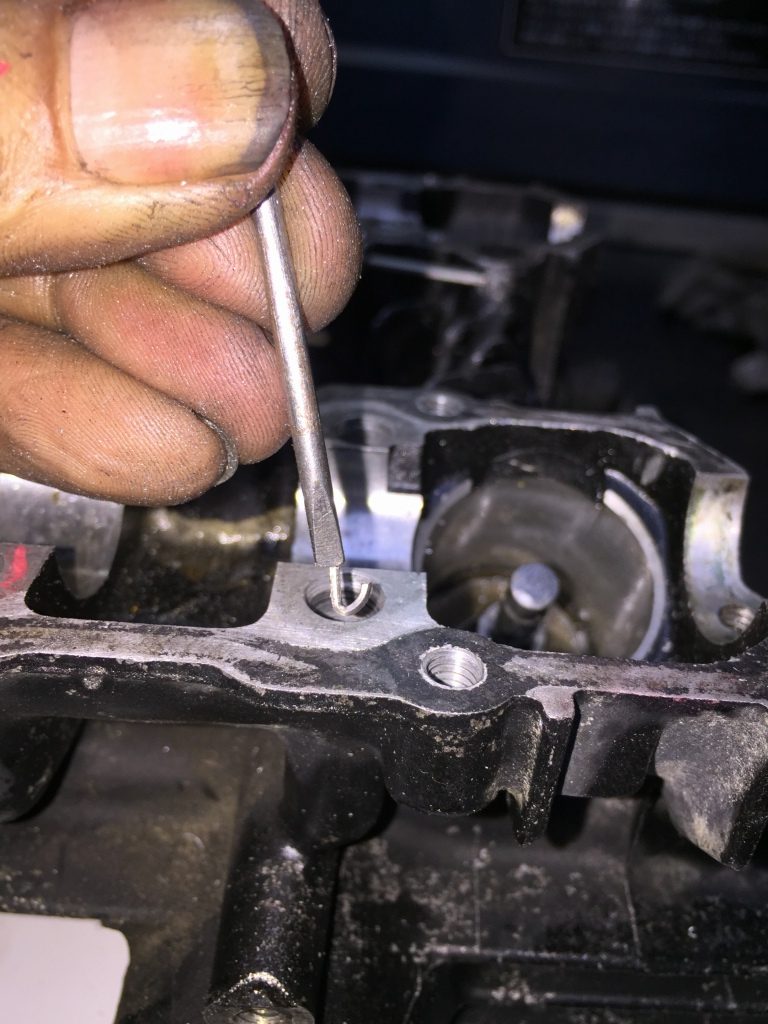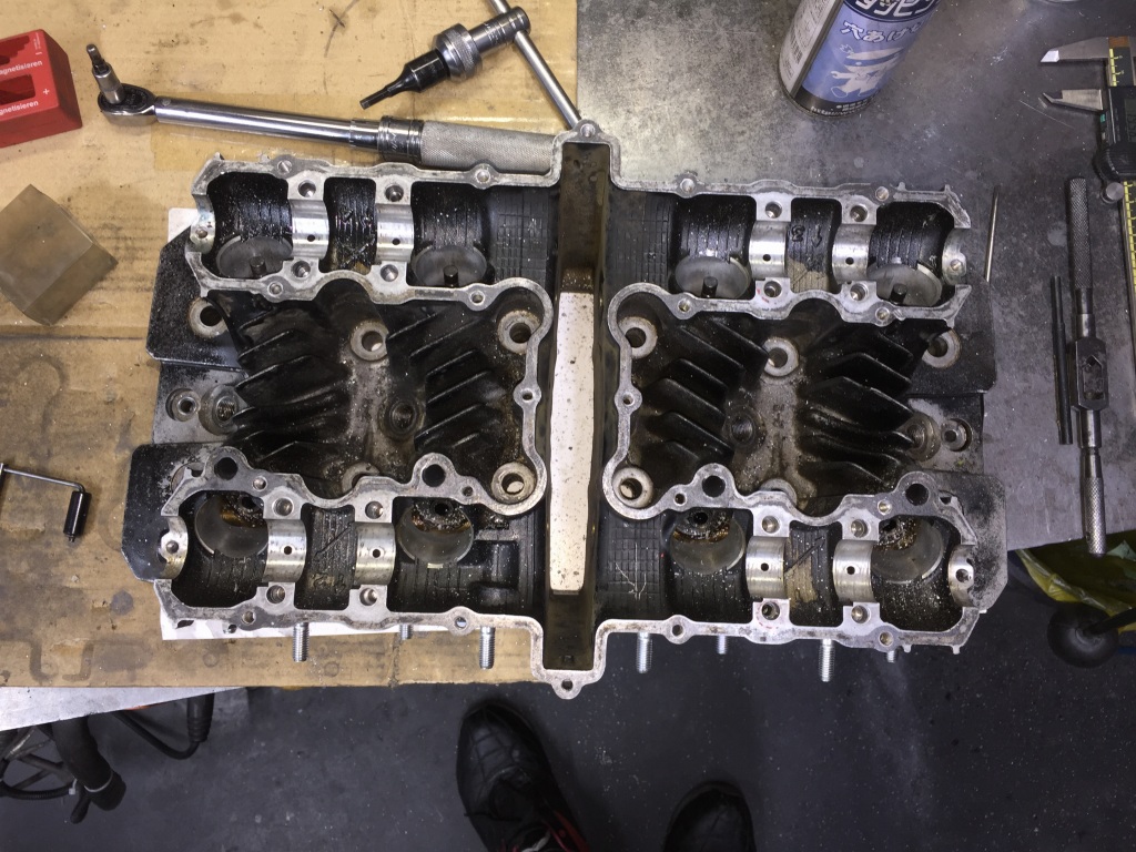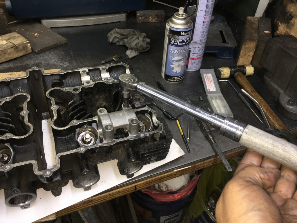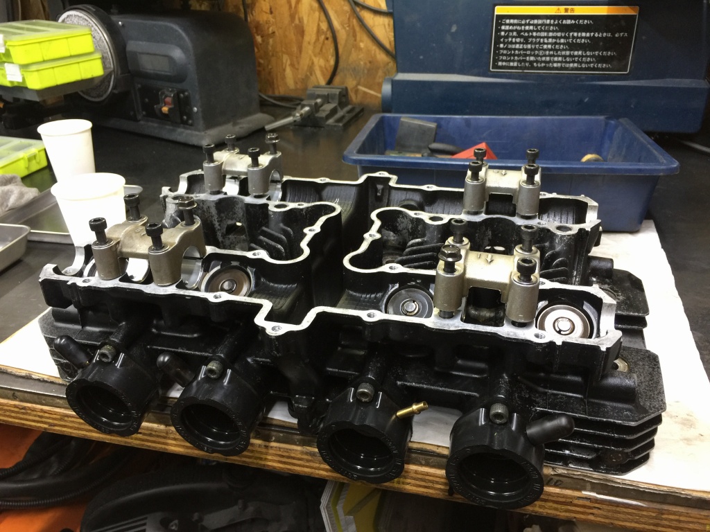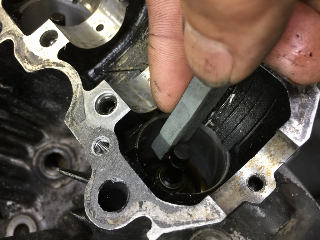 続いて、カムホルダーのネジを修理するので、一旦バルブを外します。