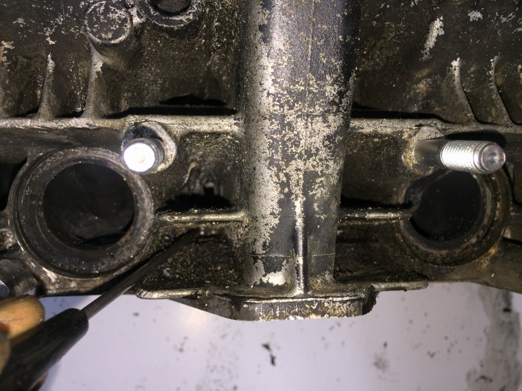 シリンダー脇のネジも傷んでいたので、左右ともヘリサート加工します。