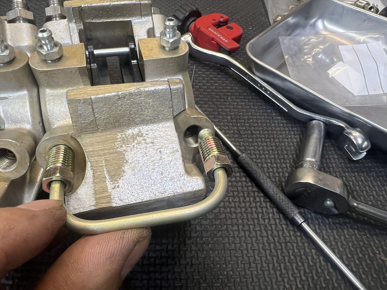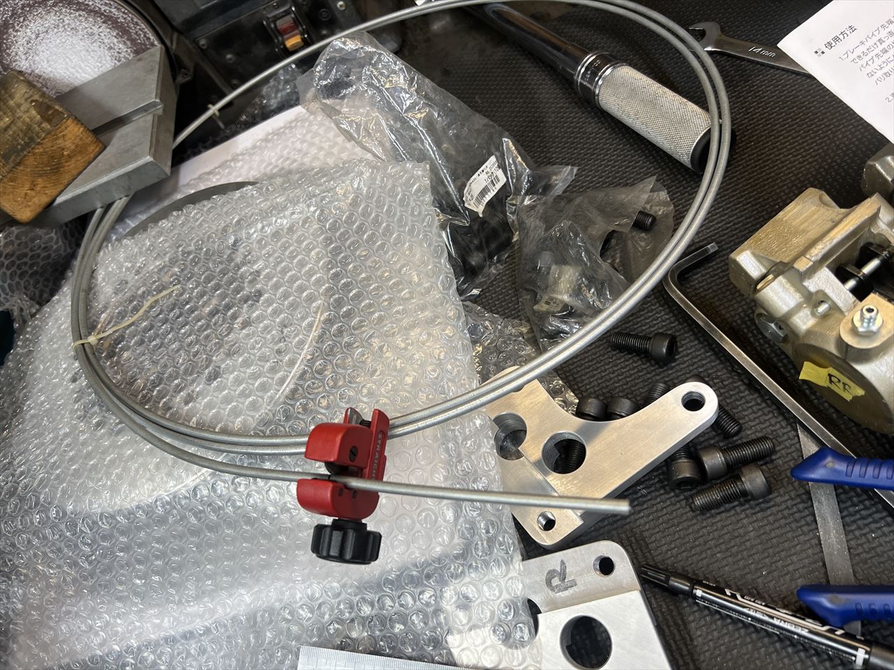 このロットから付属のブレーキチューブが長さ違いで作られているのでこのままでは合いません。ブレーキチューブは新規に作り直します。