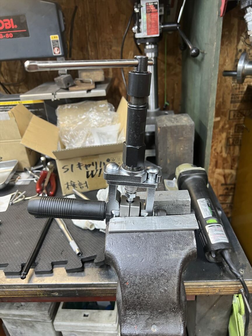ダイスを取り換えて2段目のフレアを加工します。