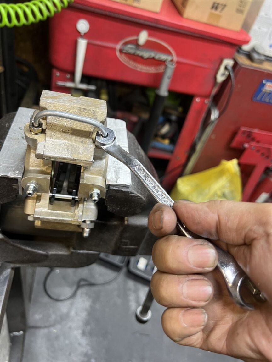 最後はフレアナットレンチで締め付けます。