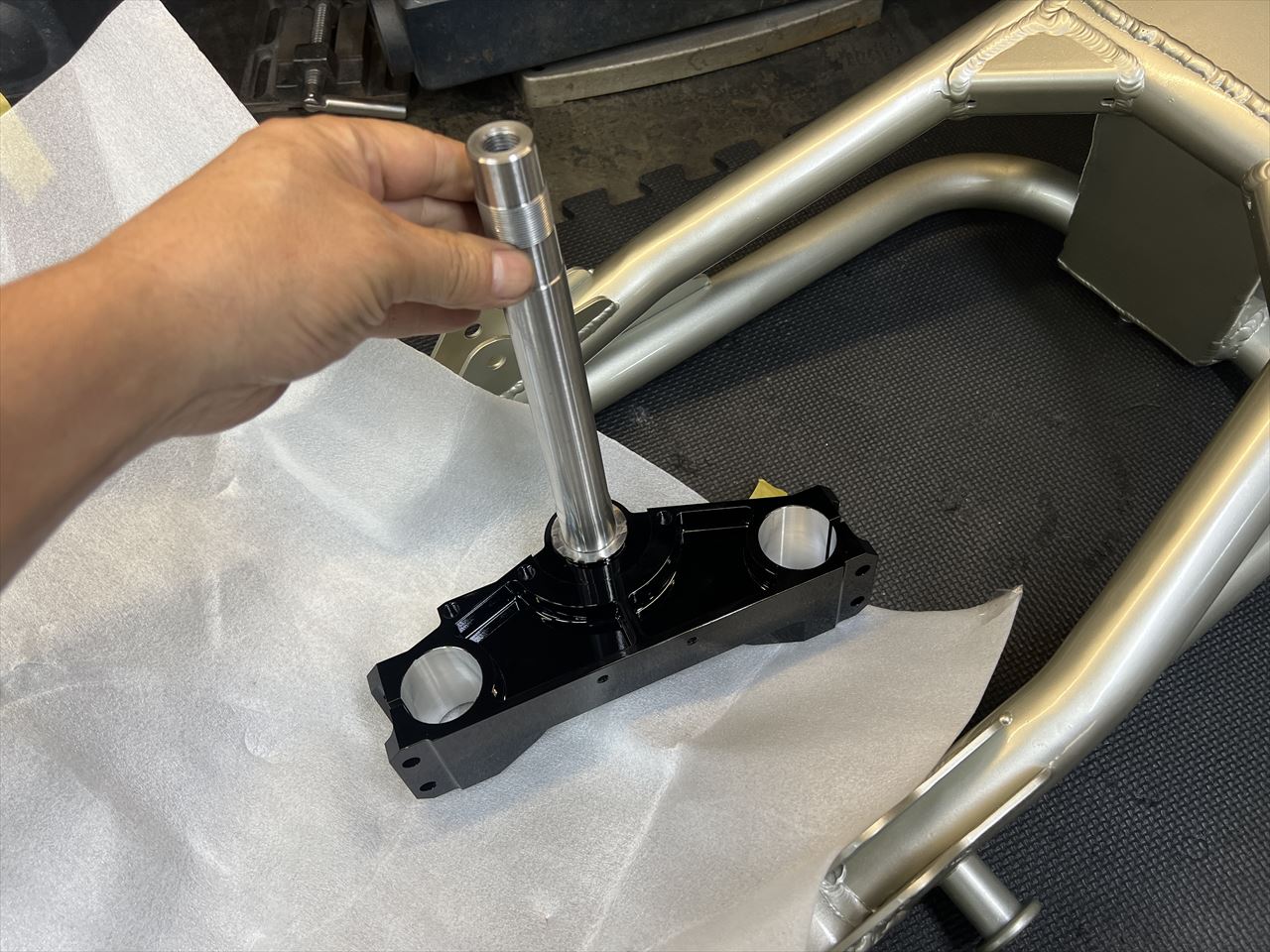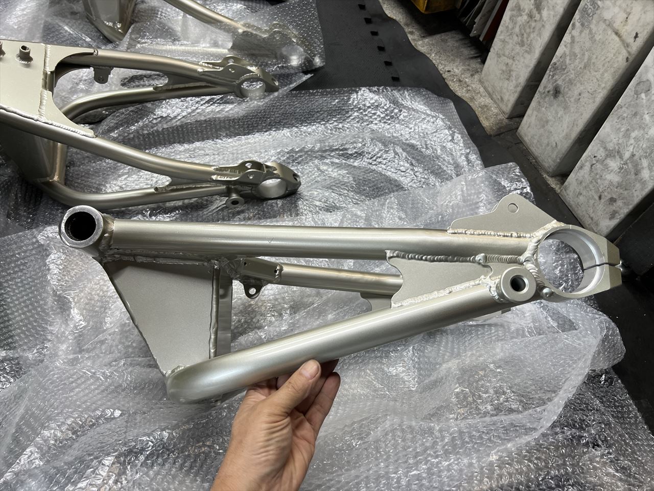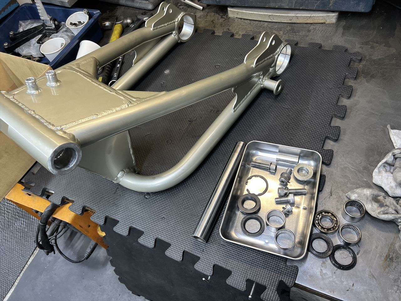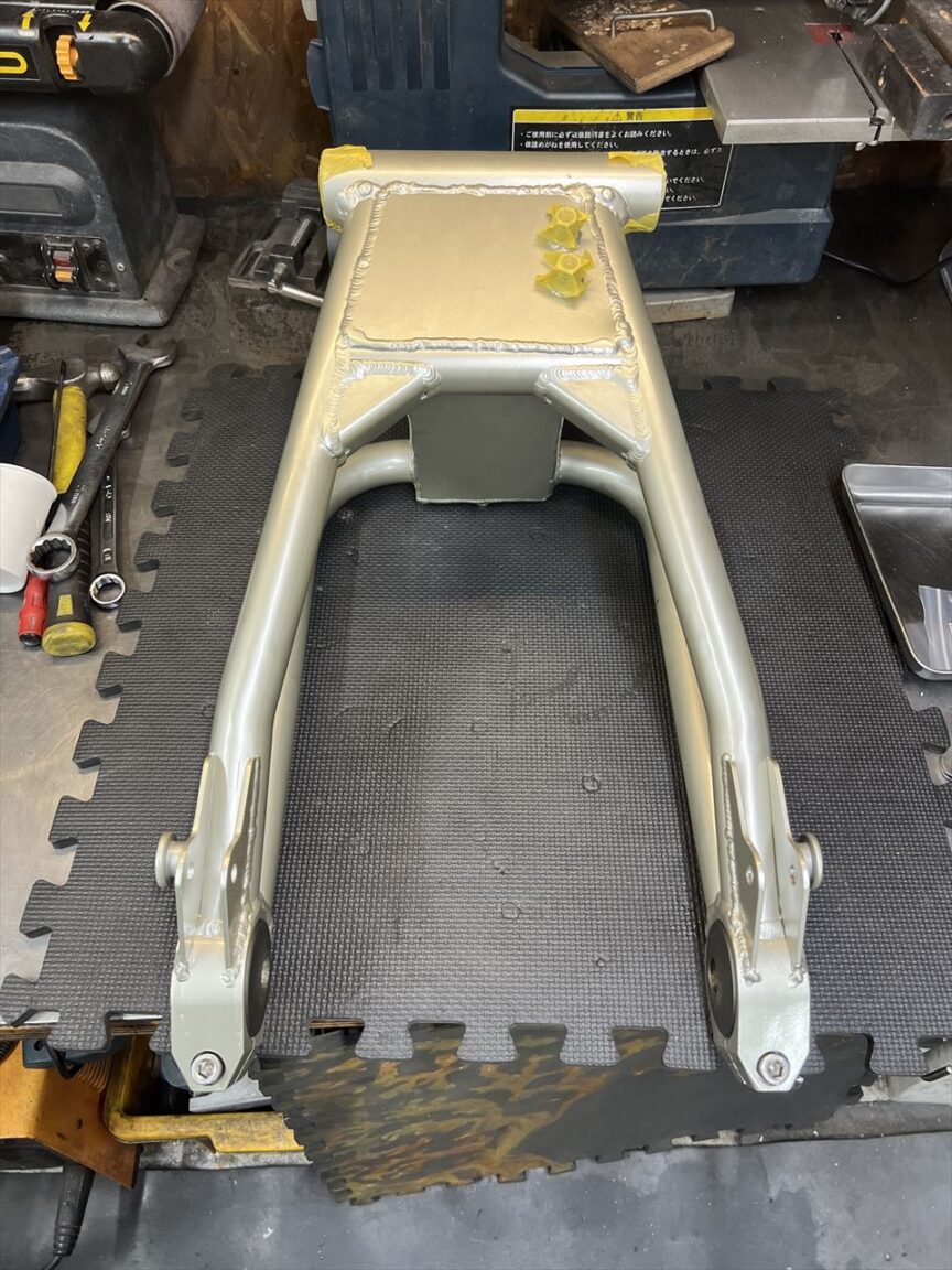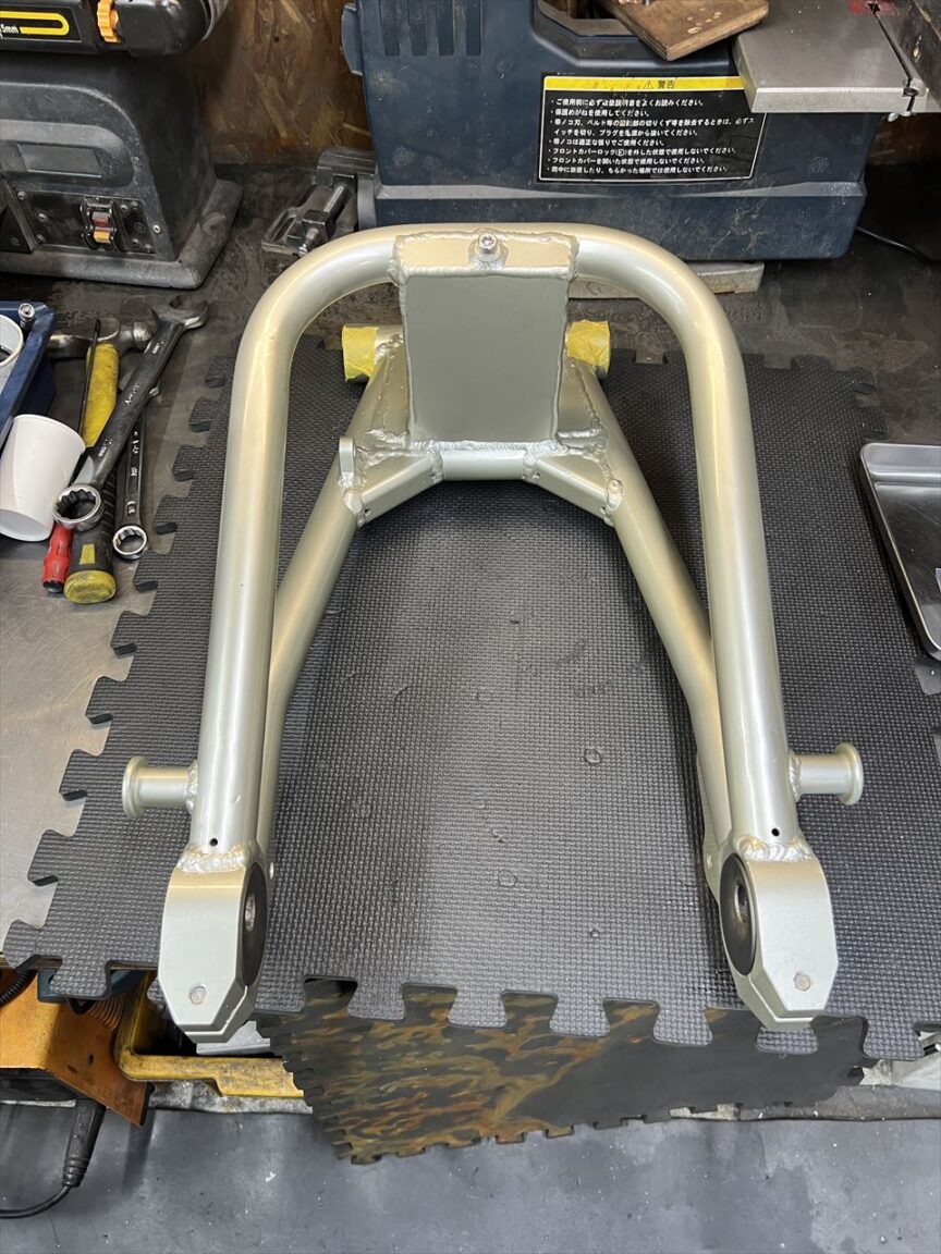 ご使用中のZRX1100改S1スイングアームにキャッチタンク追加のご依頼でしたが、ようやく塗装が完了しました。