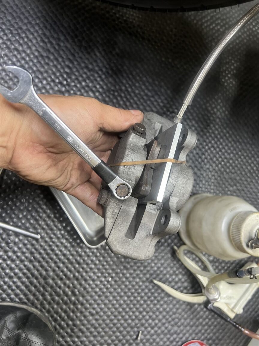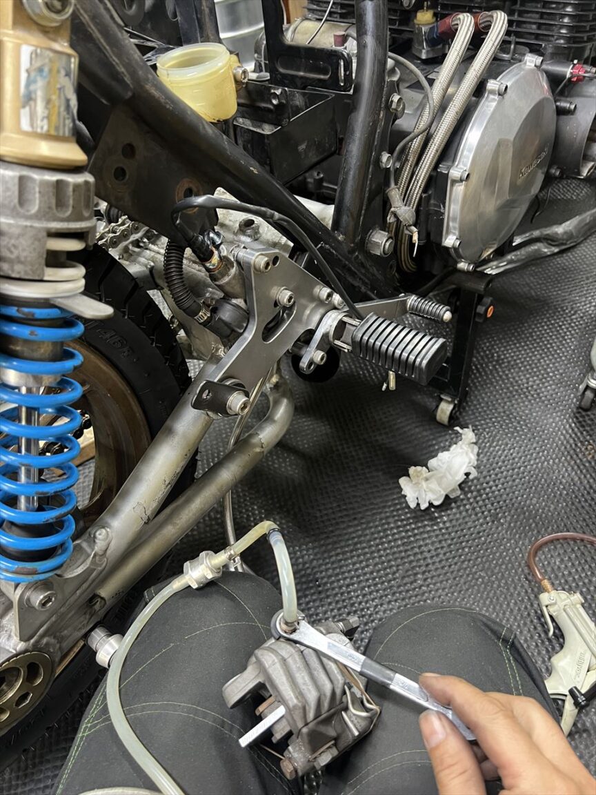 まだだったリヤブレーキのエア抜きをします。