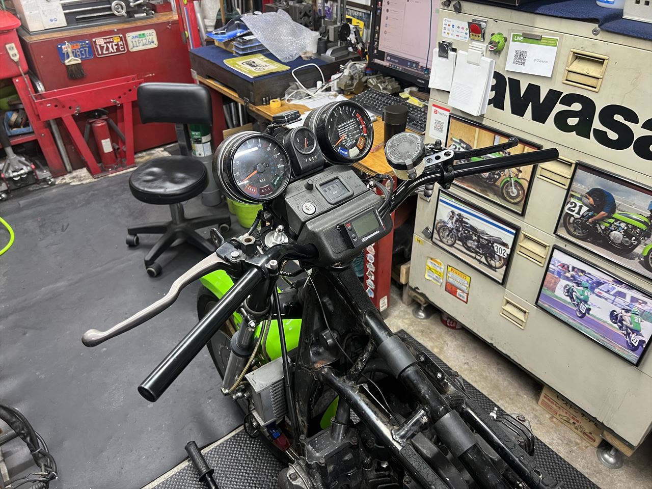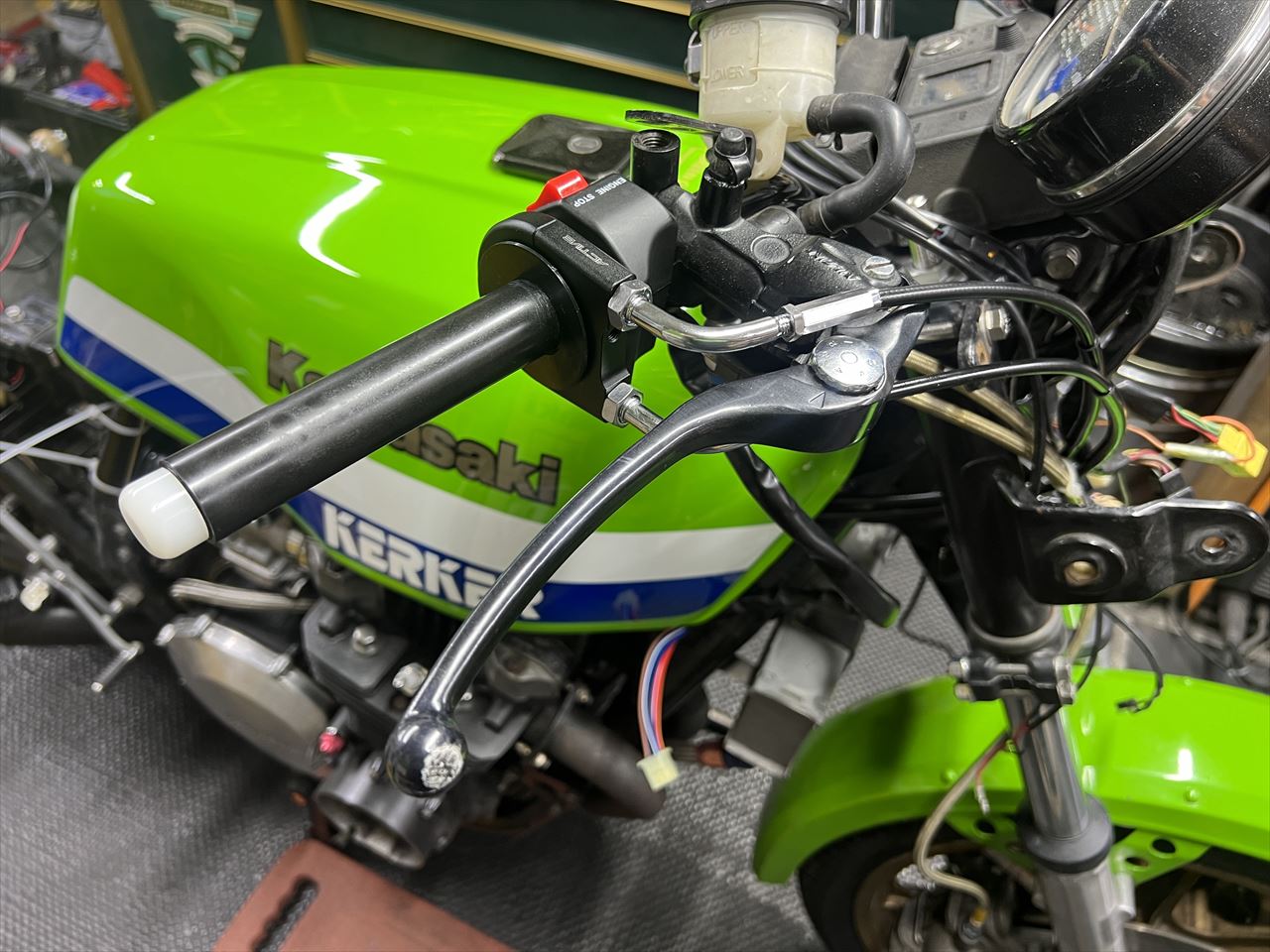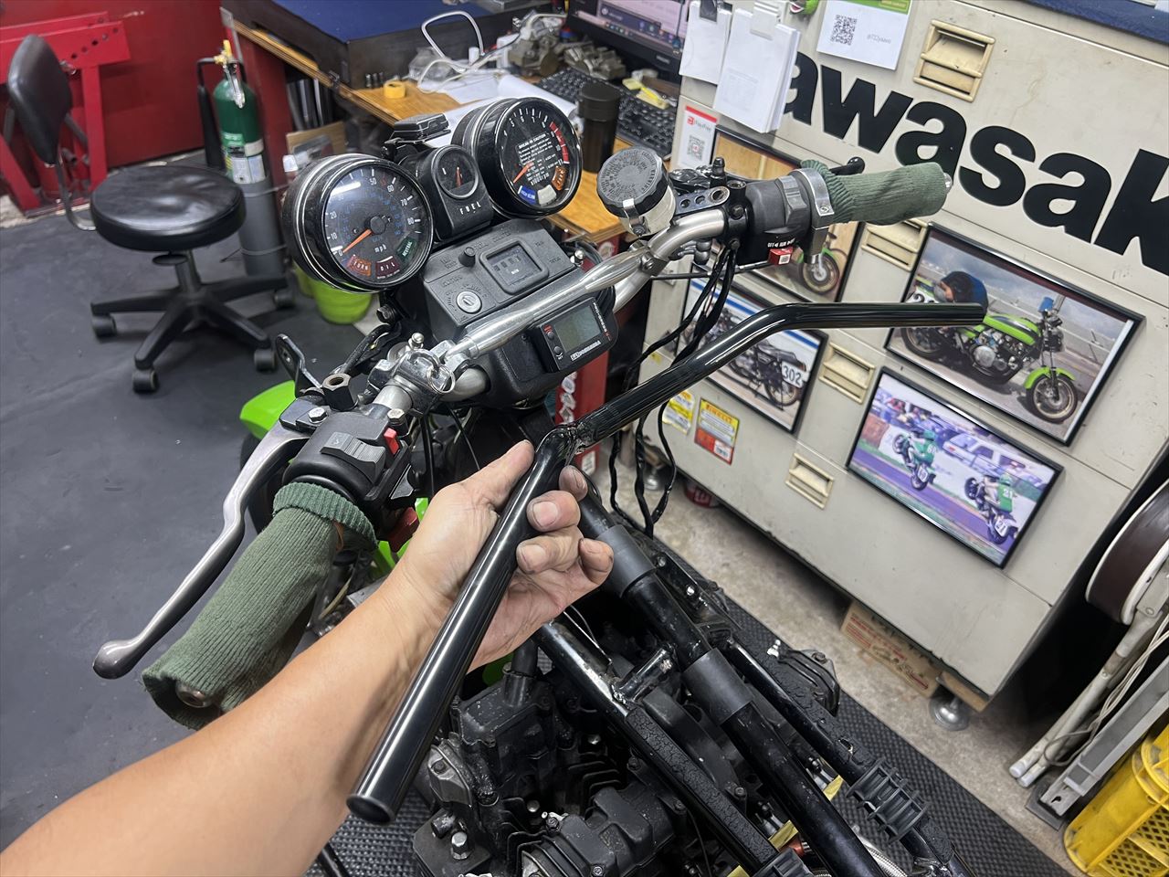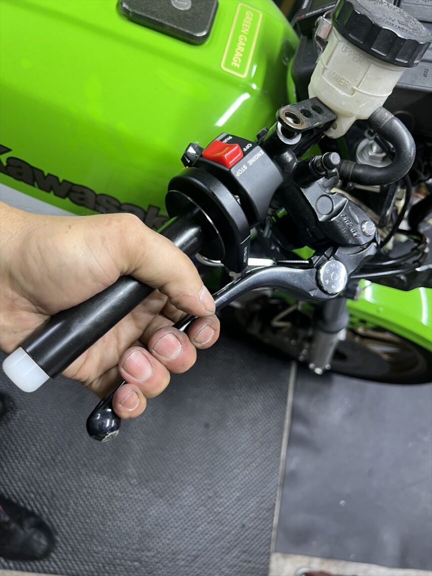 ハンドル交換後はこちら。ブレースバーが無くなりスッキリしましたね。