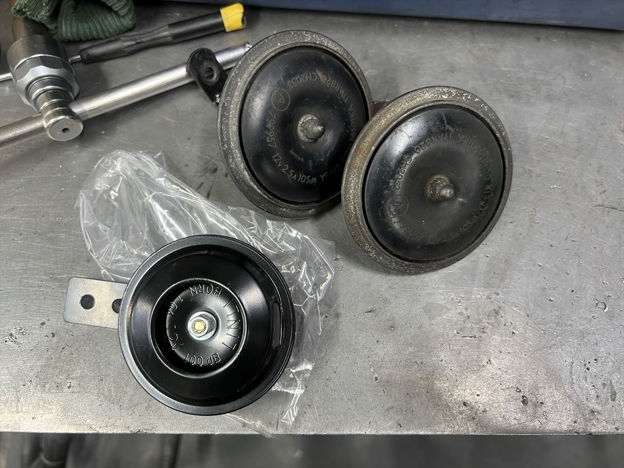 そこにノーマルより小型のホーンを1個だけ取り付けます。