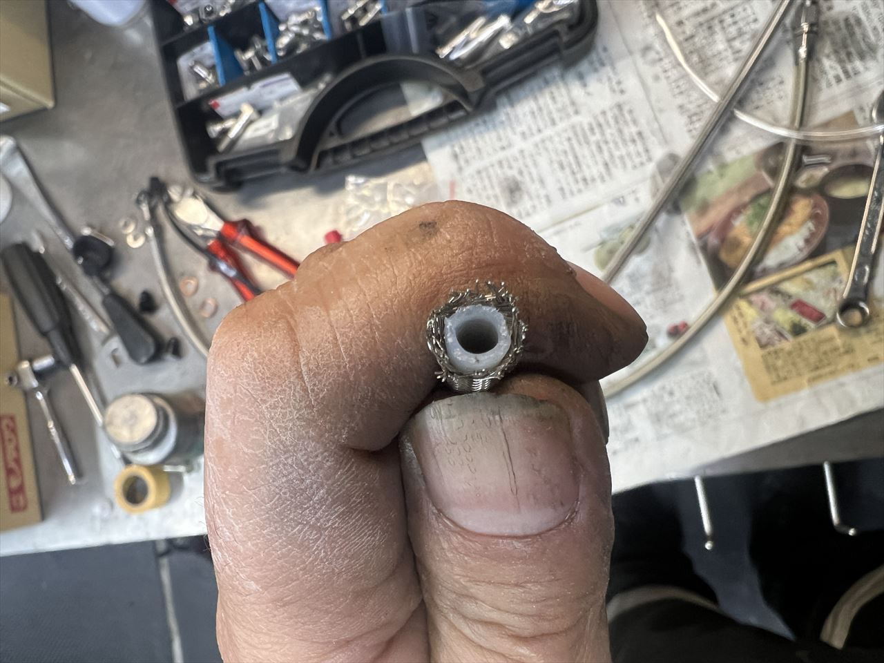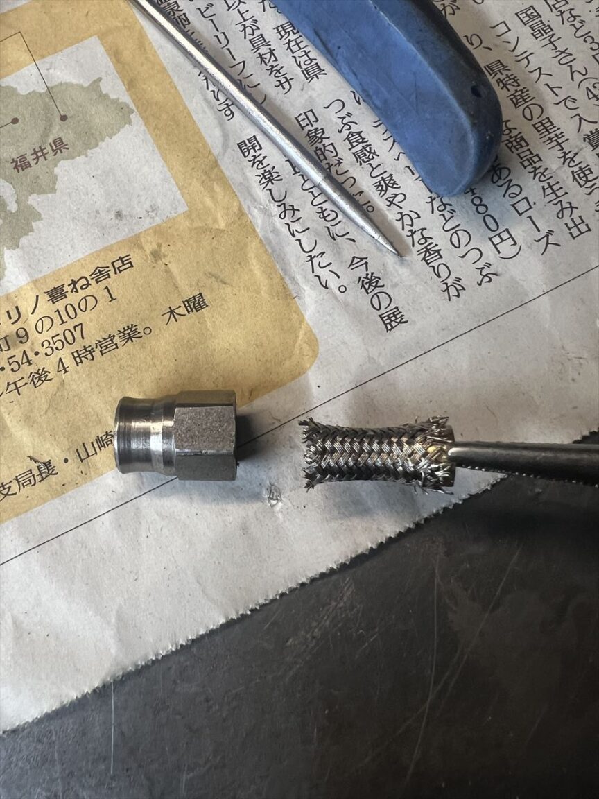 オリーブとホースを抜き出しました。オリーブはカシメられているので再使用できません。