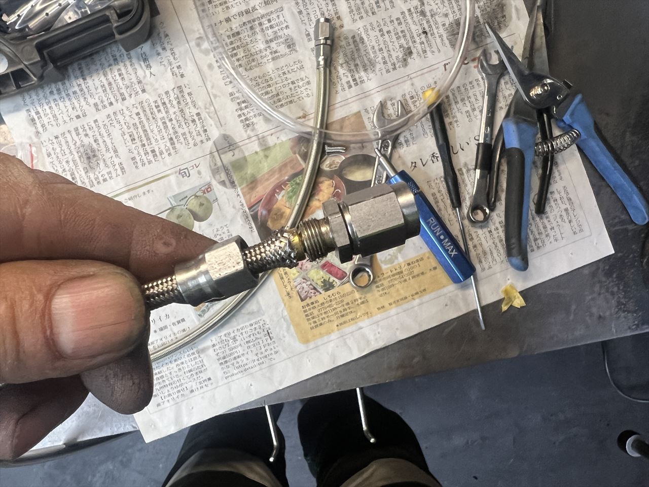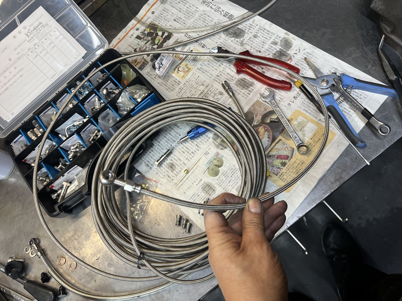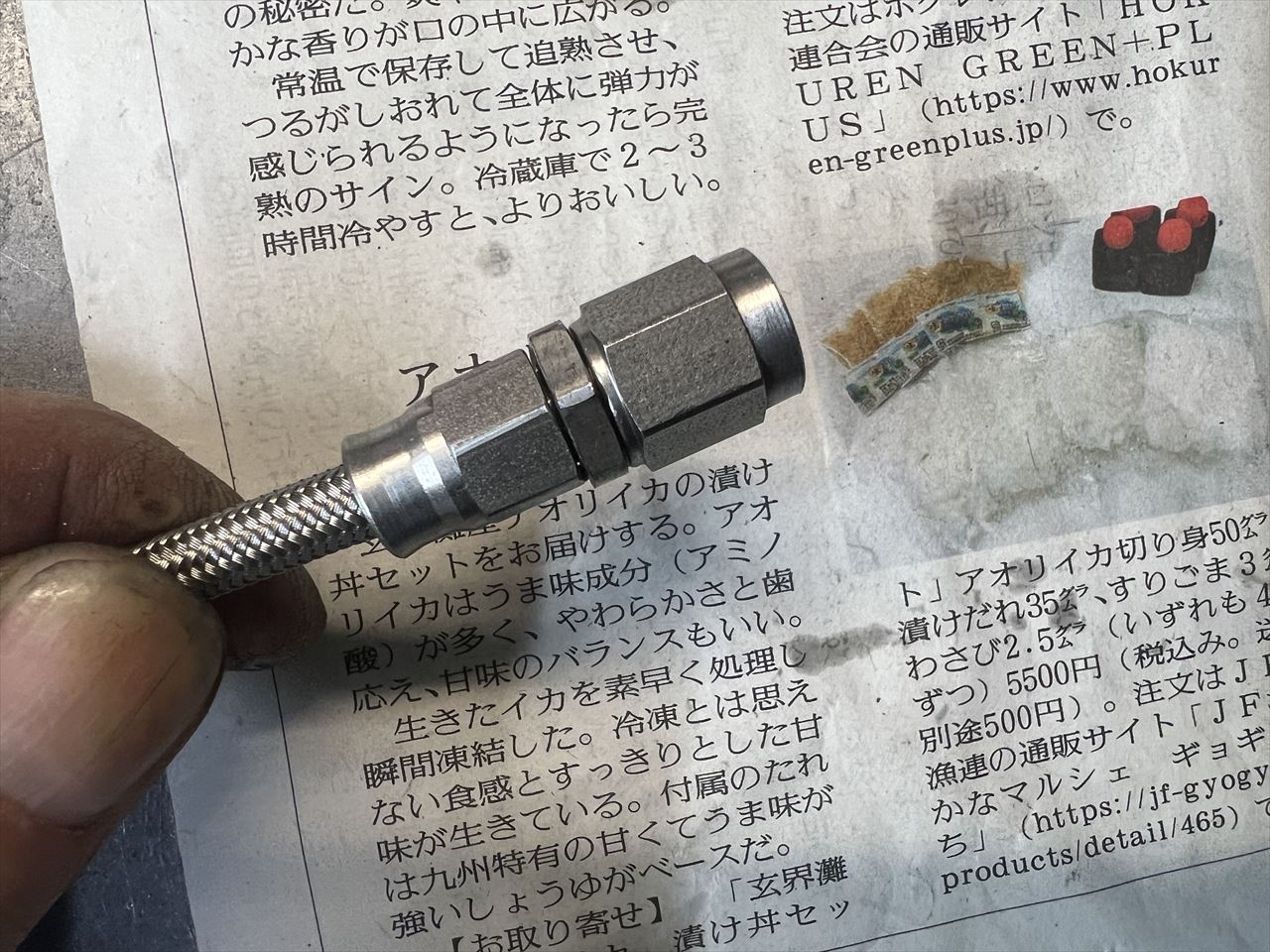 キャリパーはAP2ポッドからS1キャリパーに変更するので、既存のホースが使えるか確認します。