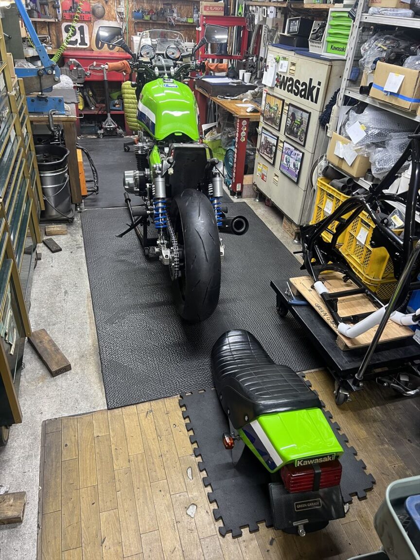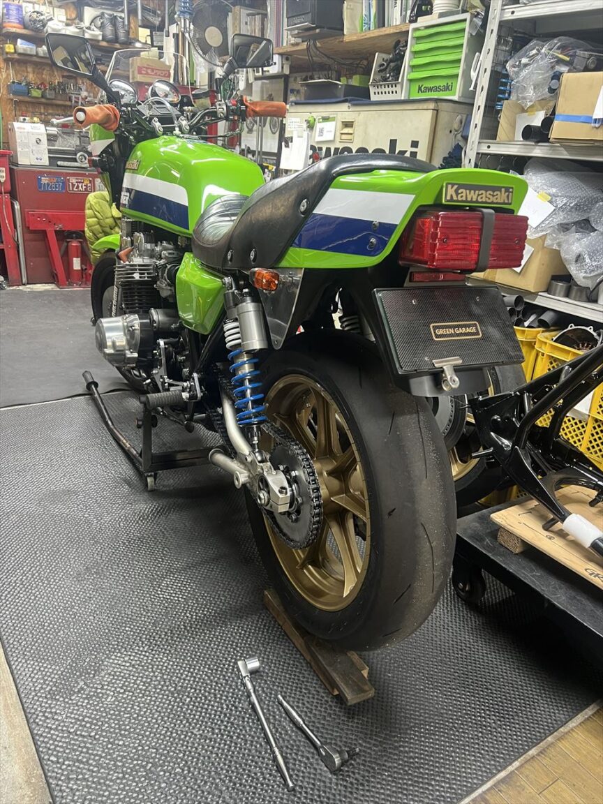 Z1000J2 U.S様 ワークスS1仕様 リヤモーリスのハブ緩みとダイマグセットアップ スプリームS1シート取り付け